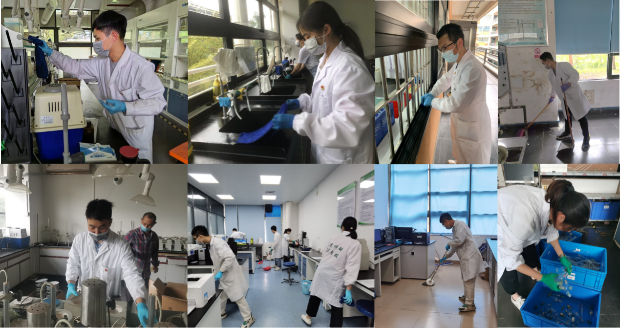 活动中支部党员积极配合负责老师,认认真真为化工原理、应用化学、食品科学与工程、药品库房、大型仪器室等十余间实验室进行彻底清洁,整理后各实验室焕然一新。
