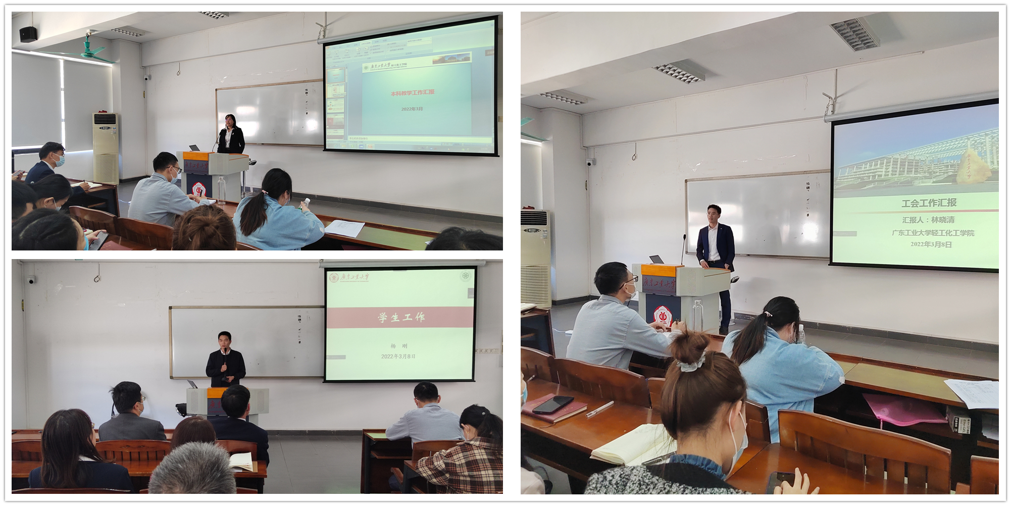学院副院长霍延平、郝志峰、何军、郑育英,党委副书记杨刚,部门工会主席林晓清分别就国家基金项目申报、实验建设与安全、研究生招生复试与培养、本科教学管理、学生工作、工会工作等做了具体说明和补充要求。