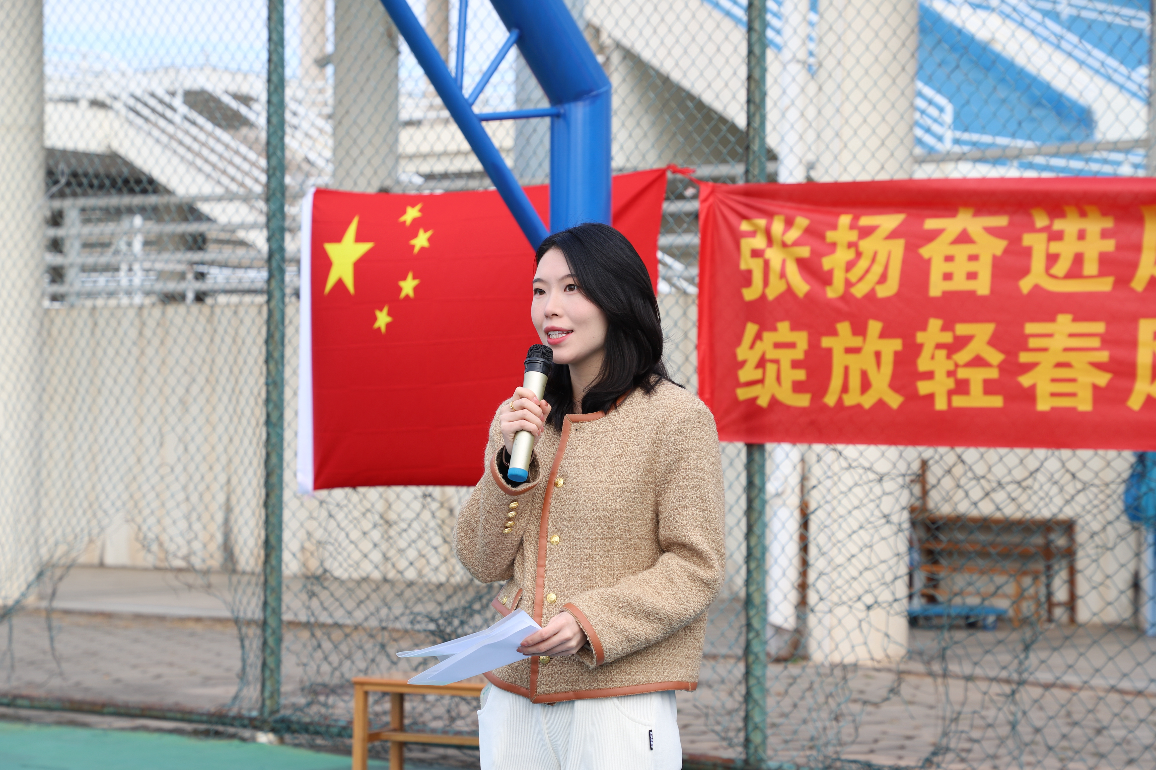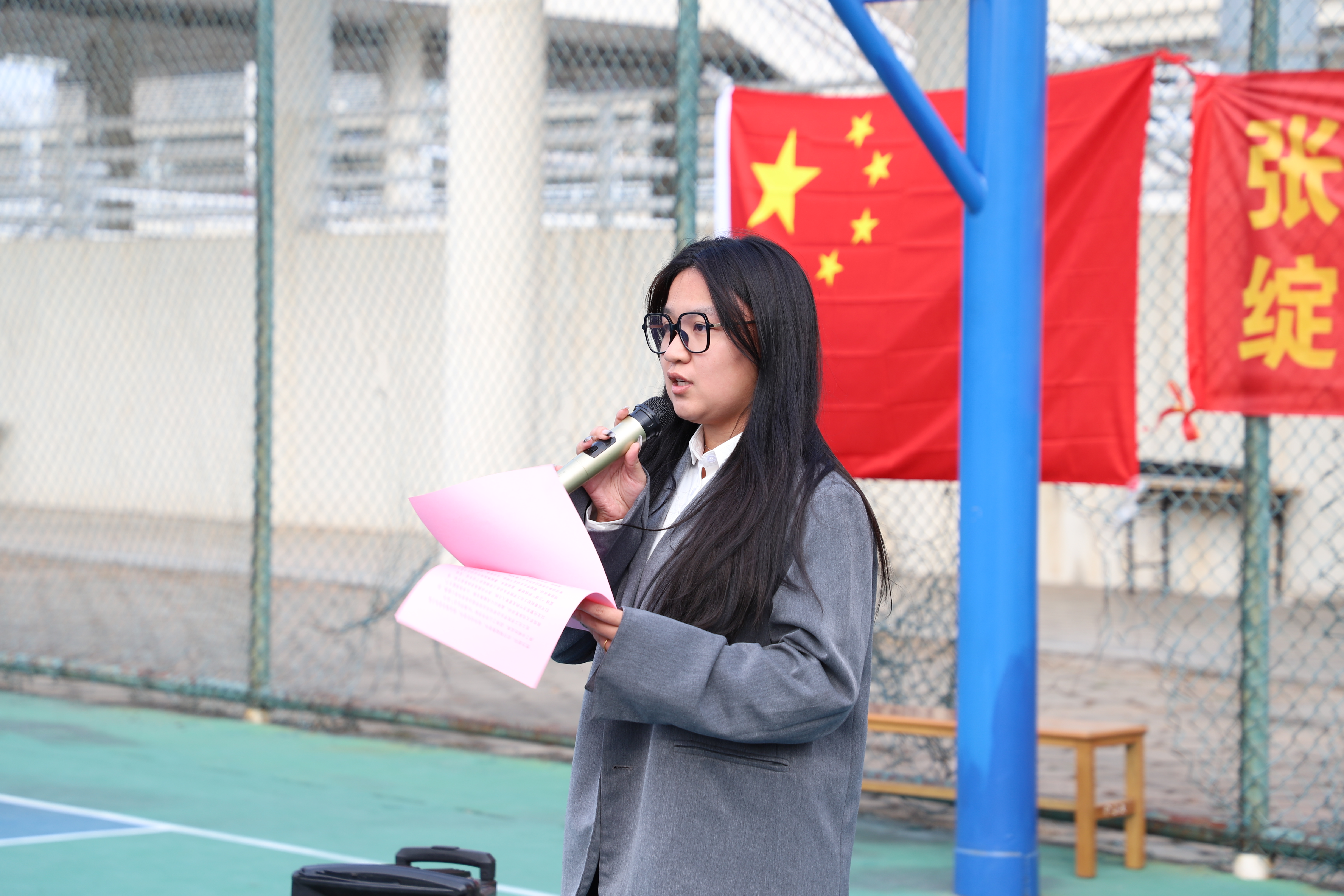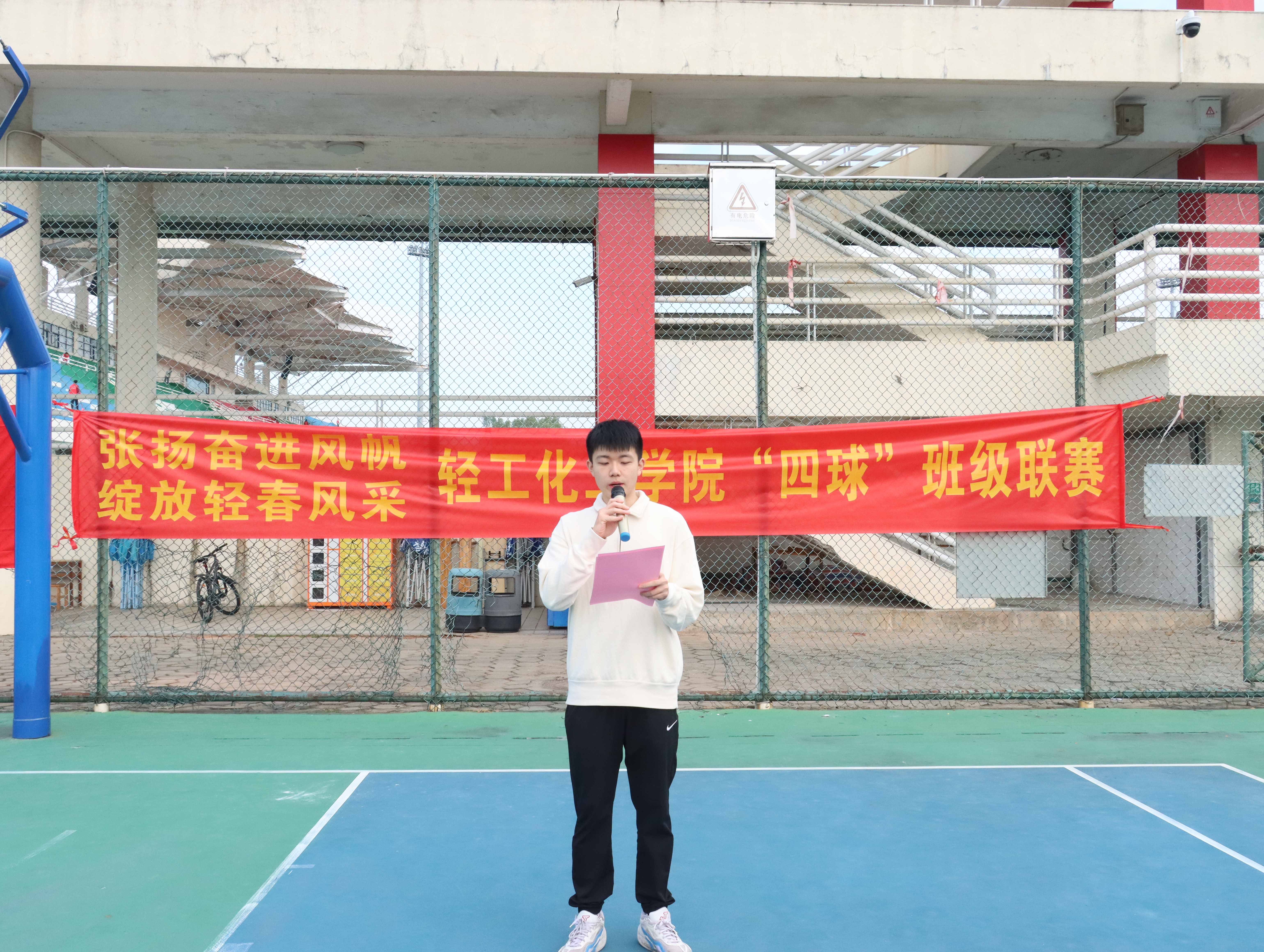 随后,学院学生会秘书长徐丹宁老师宣布首届“四球”班级联赛正式开幕。徐丹宁老师表示在学院党委和学校团委的正确领导与亲切关怀下,在学院团委、校学生会的大力支持和广大同学的密切配合下,一届精彩纷呈的“四球”班级联赛即将拉开帷幕。希望各位运动员弘扬体育精神,焕发青春力量,合力绘就轻化学子拼搏向上的崭新画卷。