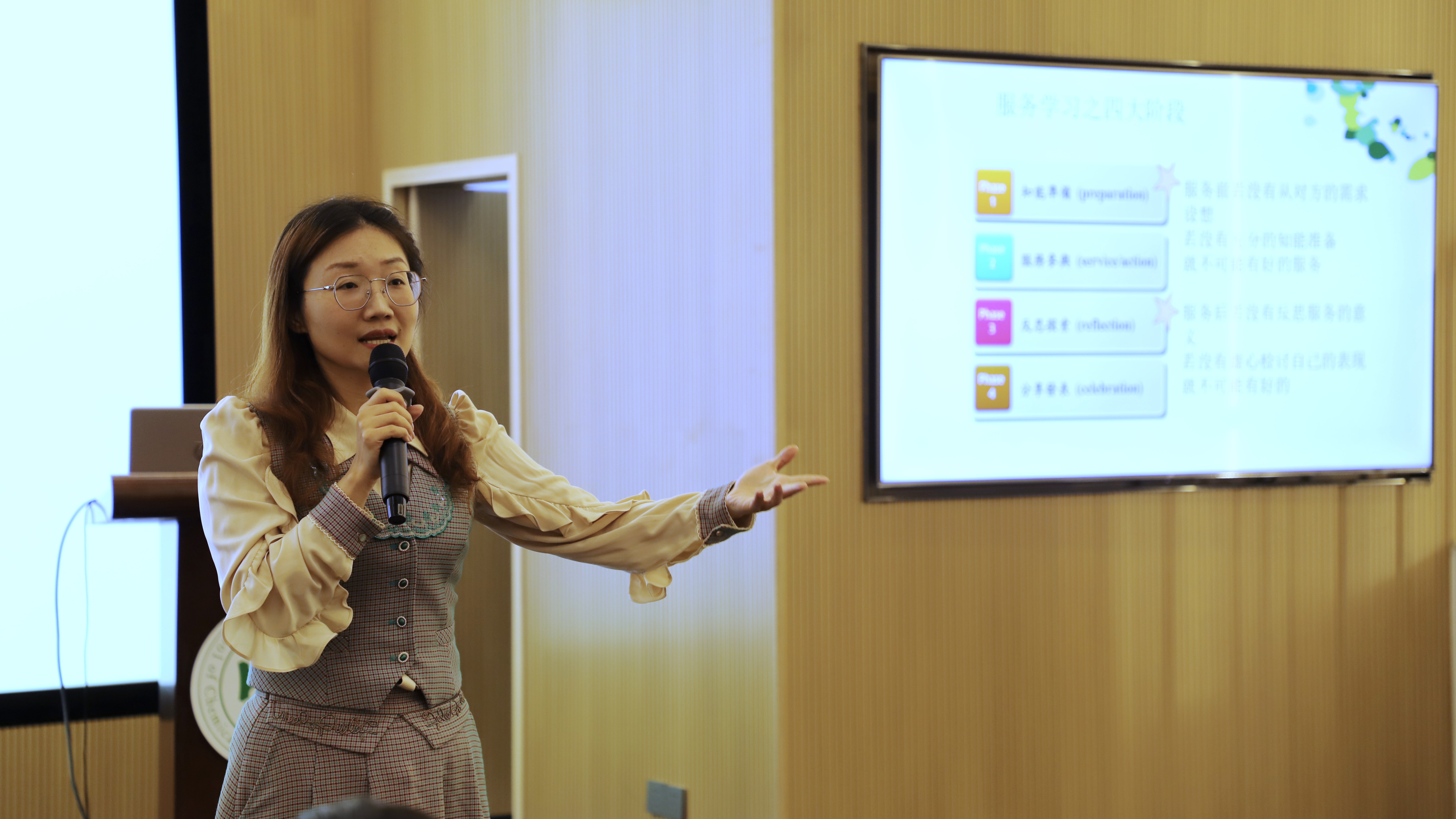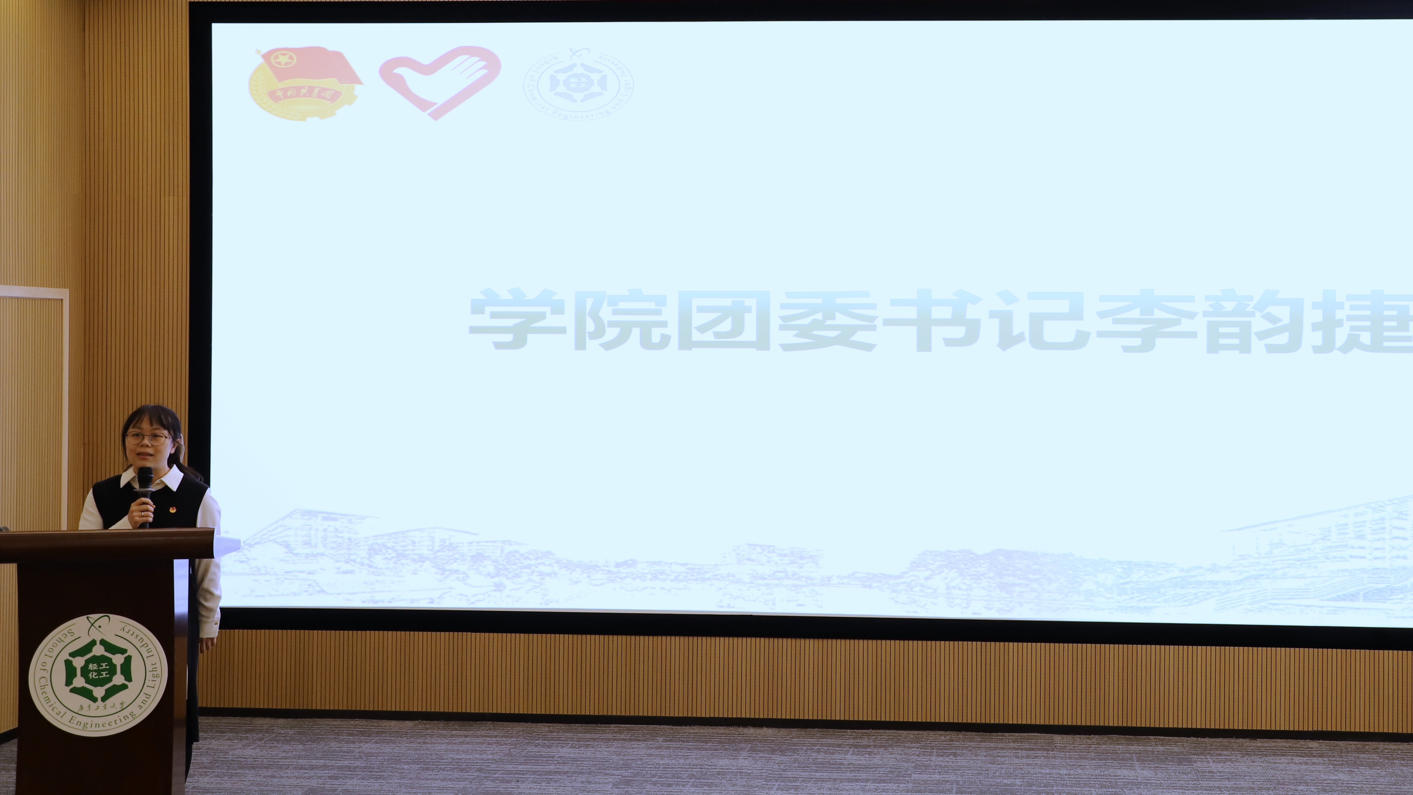 分享会在雄壮的国歌声中拉开序幕。学院团委书记李韵捷为本次分享会致辞,她首先对能够邀请到海珠区从事志愿服务方面颇有心得的刘思霖老师给予轻化学子进行分享感到感激;她指出,志愿服务是激活青年大学生社会实践的重要部分,鼓励青年学子积极投身到志愿服务之中去,为志愿服务事业贡献“轻”春力量。