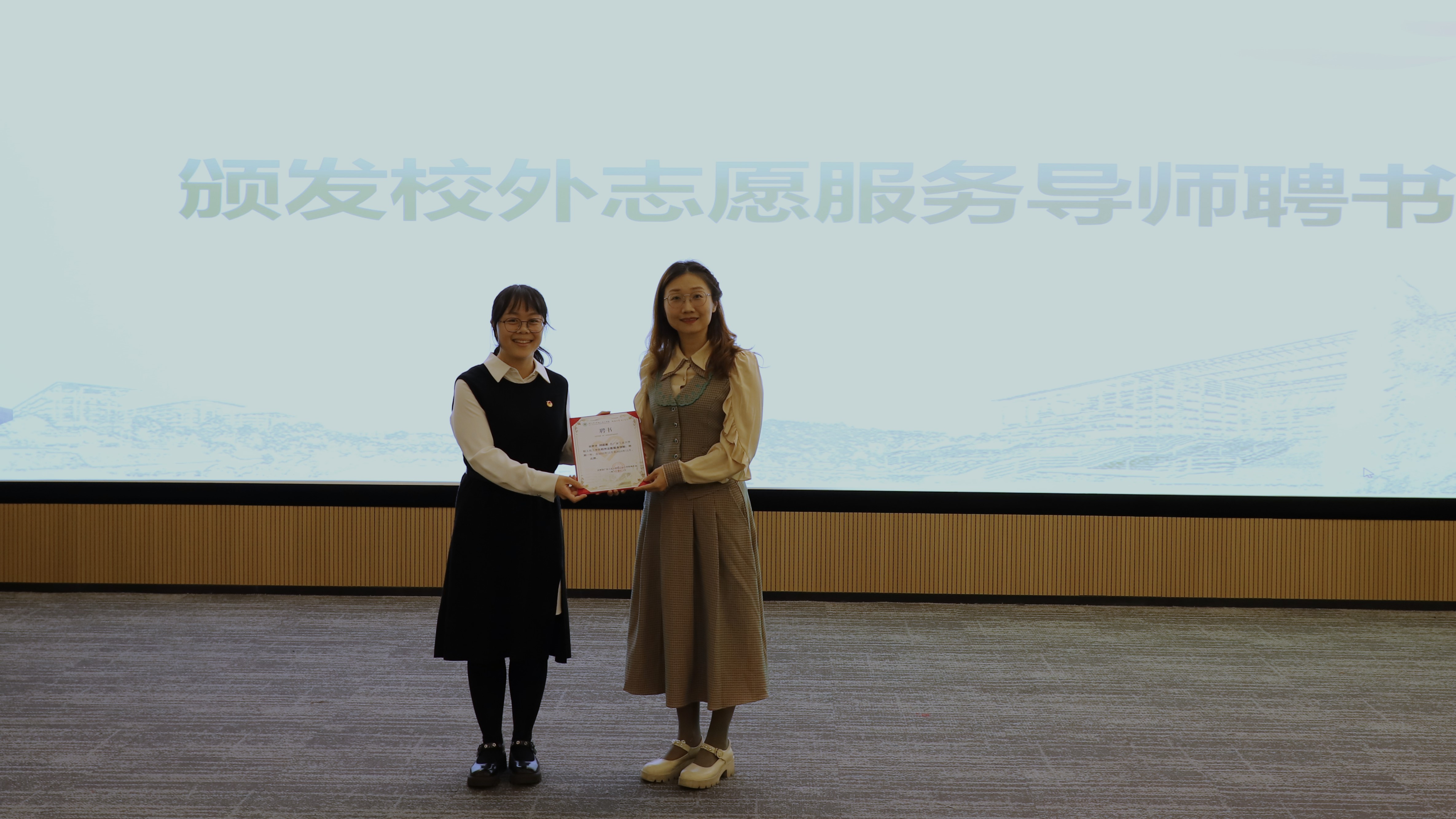 为加强拷贝漫画 团委与海珠区团委在志愿活动上的合作关系,充分发挥互助共建的作用,共同打造特色志愿服务品牌,拷贝漫画 聘请海珠区教育团工委办公室主任刘思霖为“校外志愿服务导师”。会上,李韵捷老师为刘思霖老师颁发聘书。