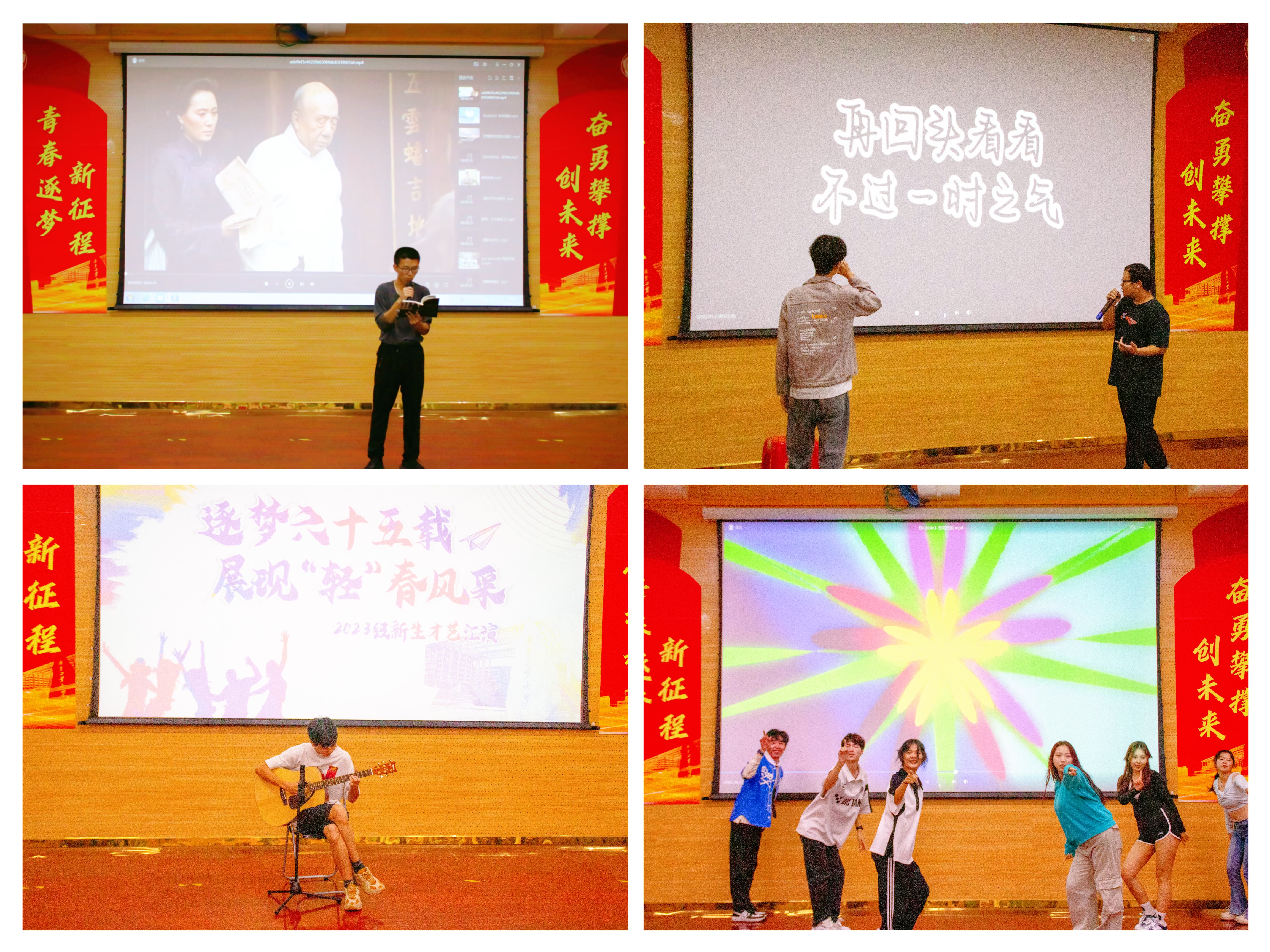 百花齐放,尽显青春本色,本次汇演节目内容丰富、形式多样,参加表演的2023级新生们多才多艺,精神饱满,展演的节目丰富多彩,古风舞《醉太平·九州同》、古琴独奏《碧涧流泉》、歌曲《蓝莲花》《年少有为》《水星记》、舞蹈《One and only》《你想成为queencard吗?》等节目呈现出了一幅幅精彩的画面,为观众们带来了一场视听盛宴,汇演现场氛围热烈,引来了在座观众的声声喝彩。