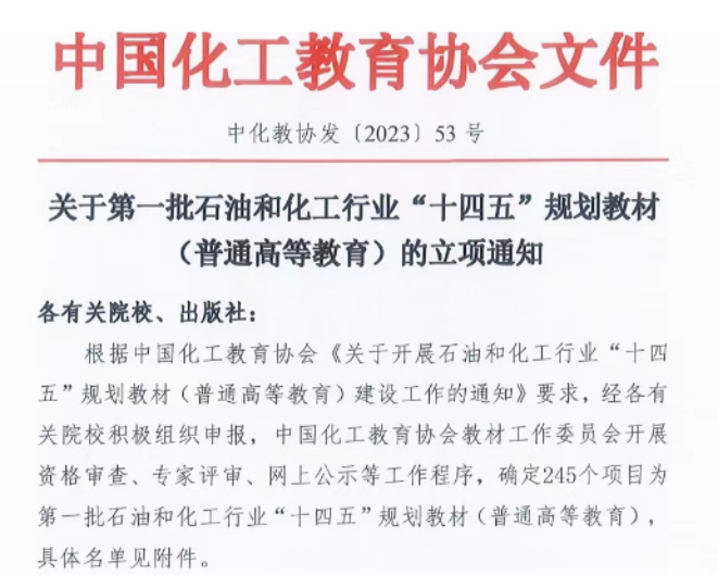 由拷贝漫画 郭清泉、方岩雄老师主持编写的《精细化工工艺学(第五版)》近日成功入选第一批石油和化学工业“十四五”规划教材(普通高等教育)。