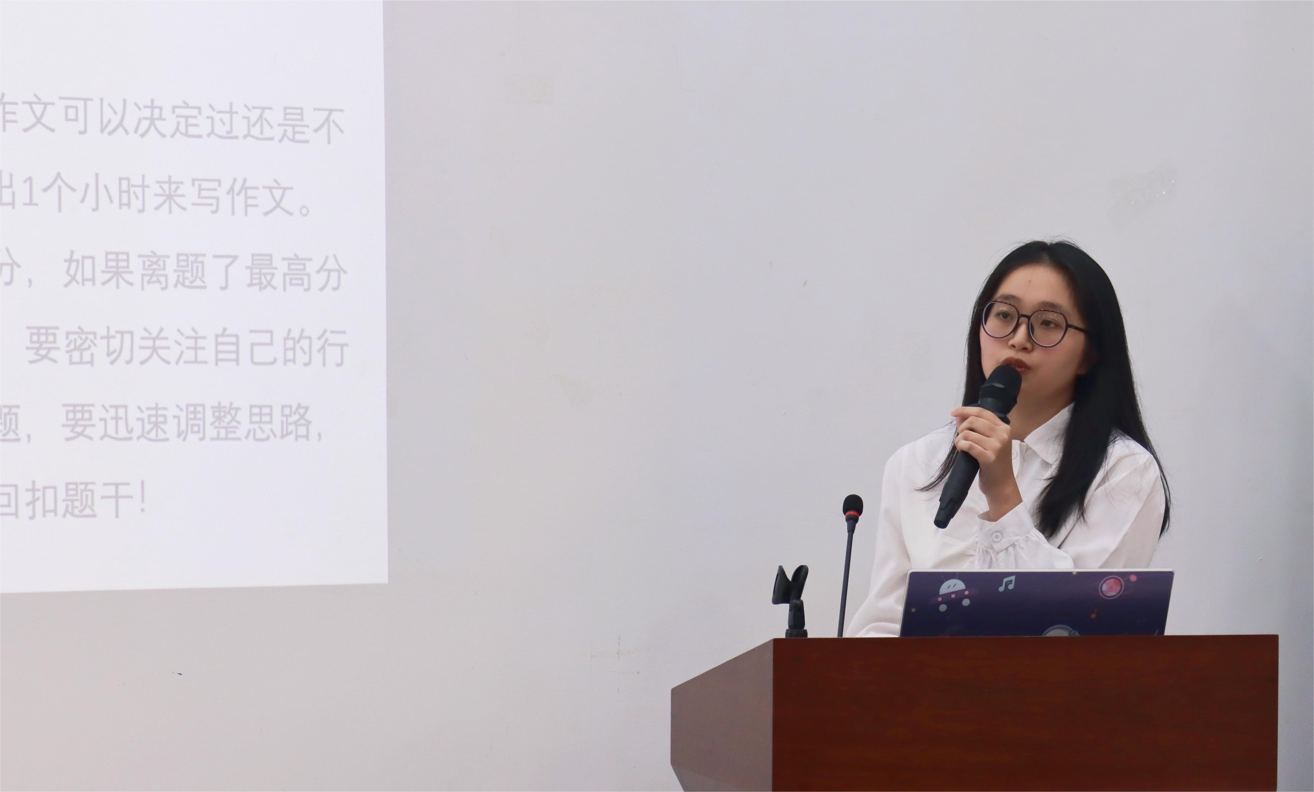 “在备考面试阶段,要熟背教案模板、动笔书写教案,尽可能把导入做得更加生动,提升板书的干净整洁性。平时建议大家通过对镜练习、录视频等方式模拟“无生”试讲场景,定期总结及调整试讲仪表及动作,增强课堂表现力”,林怡洁同学则重点剖析了结构化问答的题型及面试备考技巧,并建议同学们在备考笔试时要善于运用思维导图梳理知识点框架。