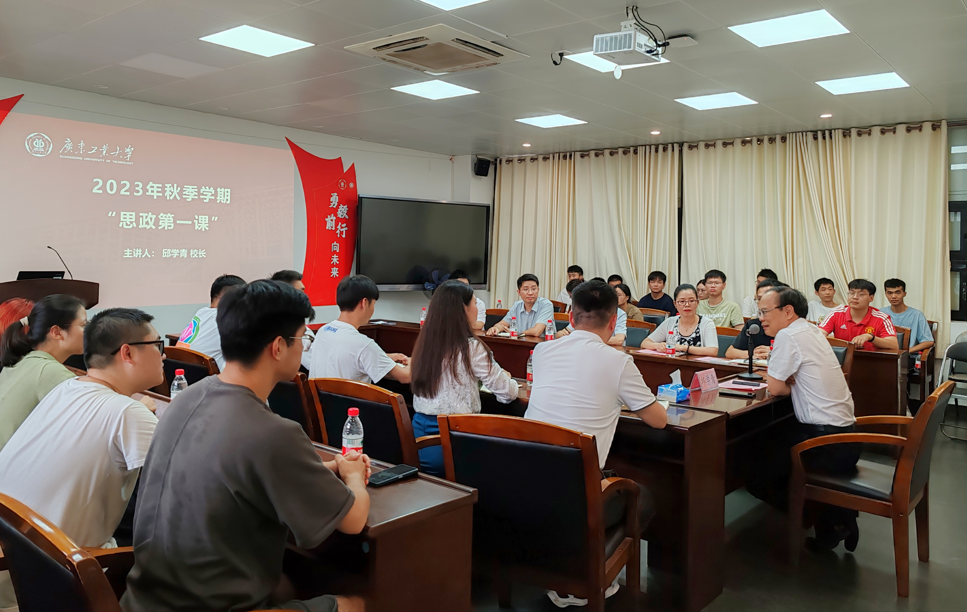 邱学青简要阐述了中国式现代化建设面临的挑战,并结合学校本科办学65年来的跨越式发展历程,讲述奋进中的广工在粤港澳大湾区建设和广东制造业当家的重大机遇下,全力推动实施学校“1+2+3”攀撑计划学科提升工程,加强人才培养、科学研究、社会服务和文化传承,肩负起新时代大学的使命。最后,他结合学校发展过程中涌现出的广工人最应该追的“星”:首任党委书记、院长曾志同志、“时代楷模”东深工程建设群体、斩获CUBAL全国总冠军的广工男子篮球队等,强调广大学子要做爱党爱国爱校、团结奋斗、求是创新的新时代好青年,做新时代的攀登者、奋斗者,为把广工建设成为“支撑粤港澳大湾区发展,工科特色鲜明,极具创造活力,世界知名”的高水平创新型大学贡献力量。