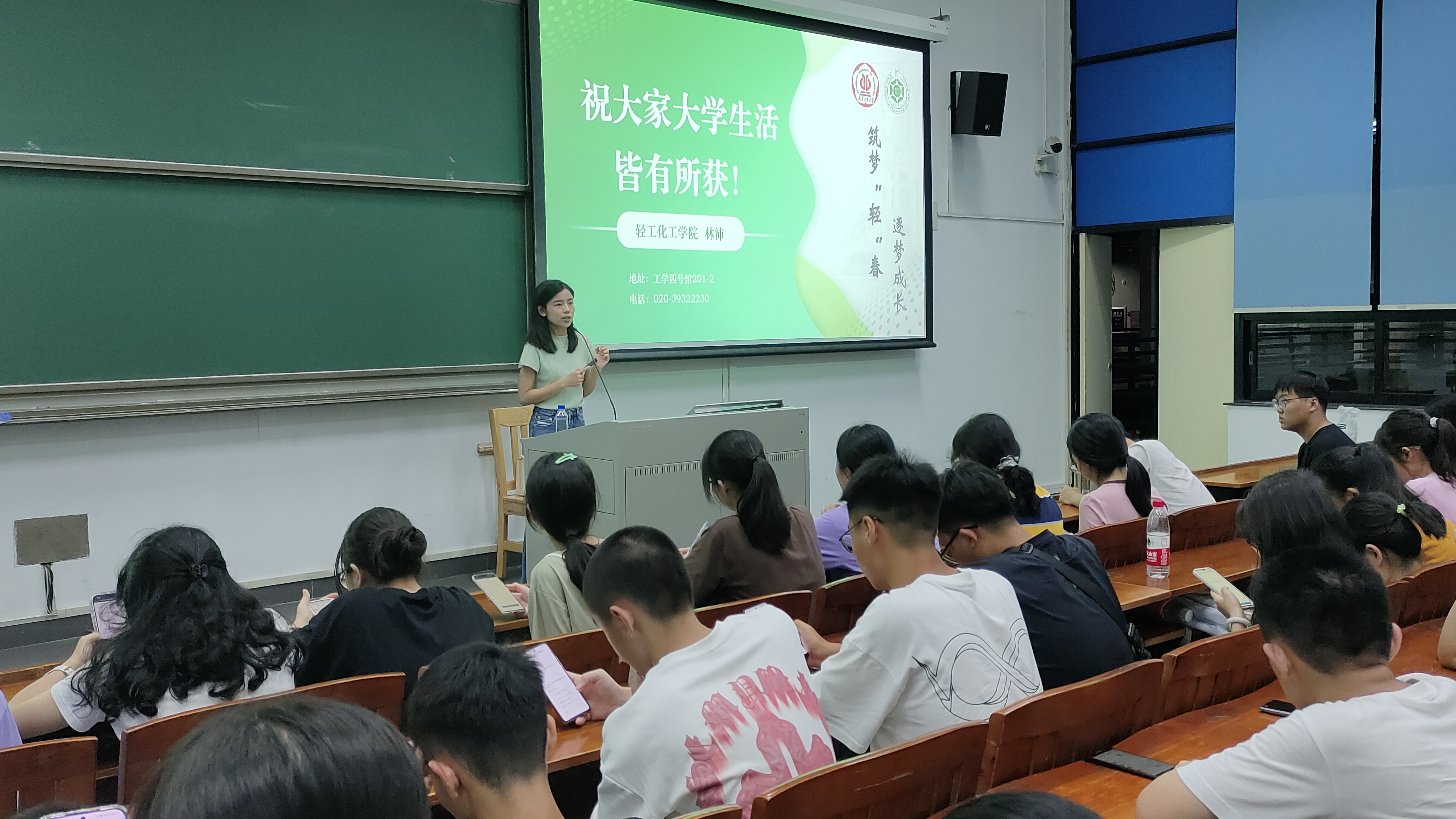 林沛老师就资助政策内容向同学们介绍了本科生的资助政策体系、生源地信用助学贷款的相关流程、绿色通道与家庭经济困难学生认定的认定条件及相应续办程序。她提醒新生可以根据自身需求了解相关政策及具体内容,避免因粗心失误造成申请上的纰漏。此外,她还向新生介绍了学校的特色项目——筑梦成长营,鼓励同学们积极参与。