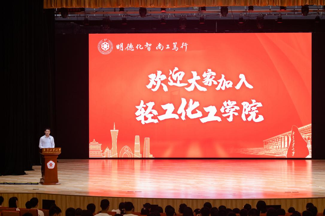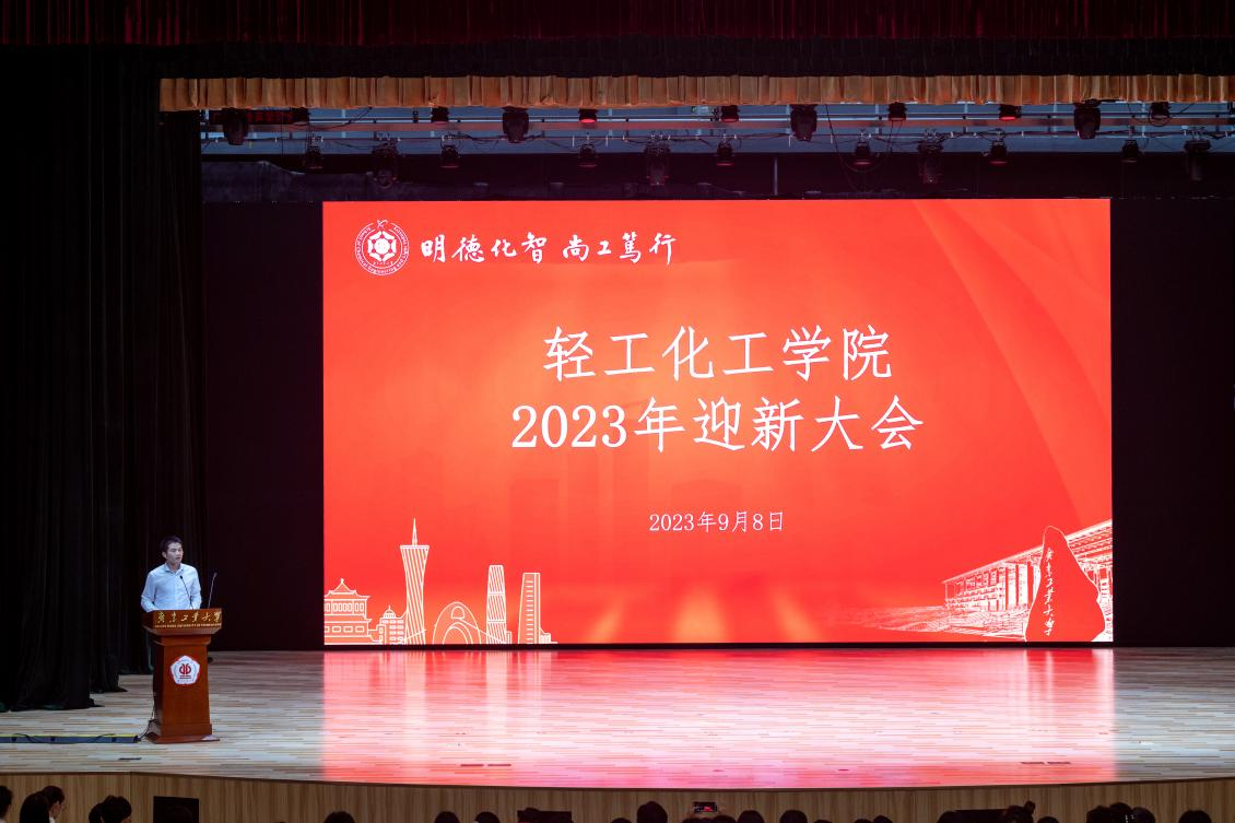 金秋送爽,学海新扬,履践致远,赓续前行。9月8日,轻工化工学院2023年迎新大会于大学城校区文化活动中心举行。学院党委书记周东斌,副院长何军、郑育英、李成超、钟远红,各系中心主任,教师代表,2023级班主任,全体辅导员,以及2023级全体本科新生、研究生新生参加了本次活动。本次大会由学院党委副书记杨刚主持。