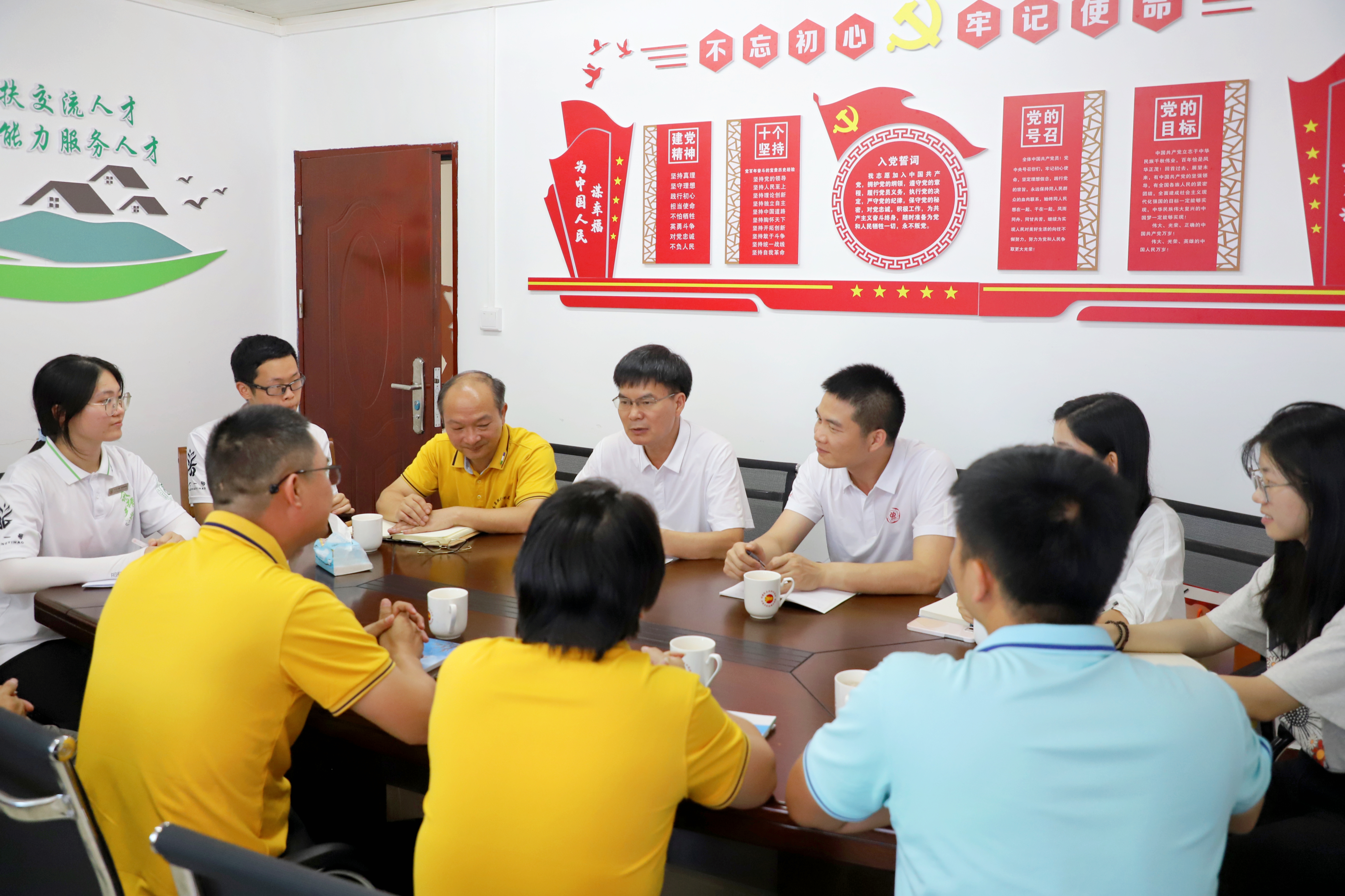 图|学院领导老师、驻镇帮镇扶村工作队队员与突击队队员讨论交流