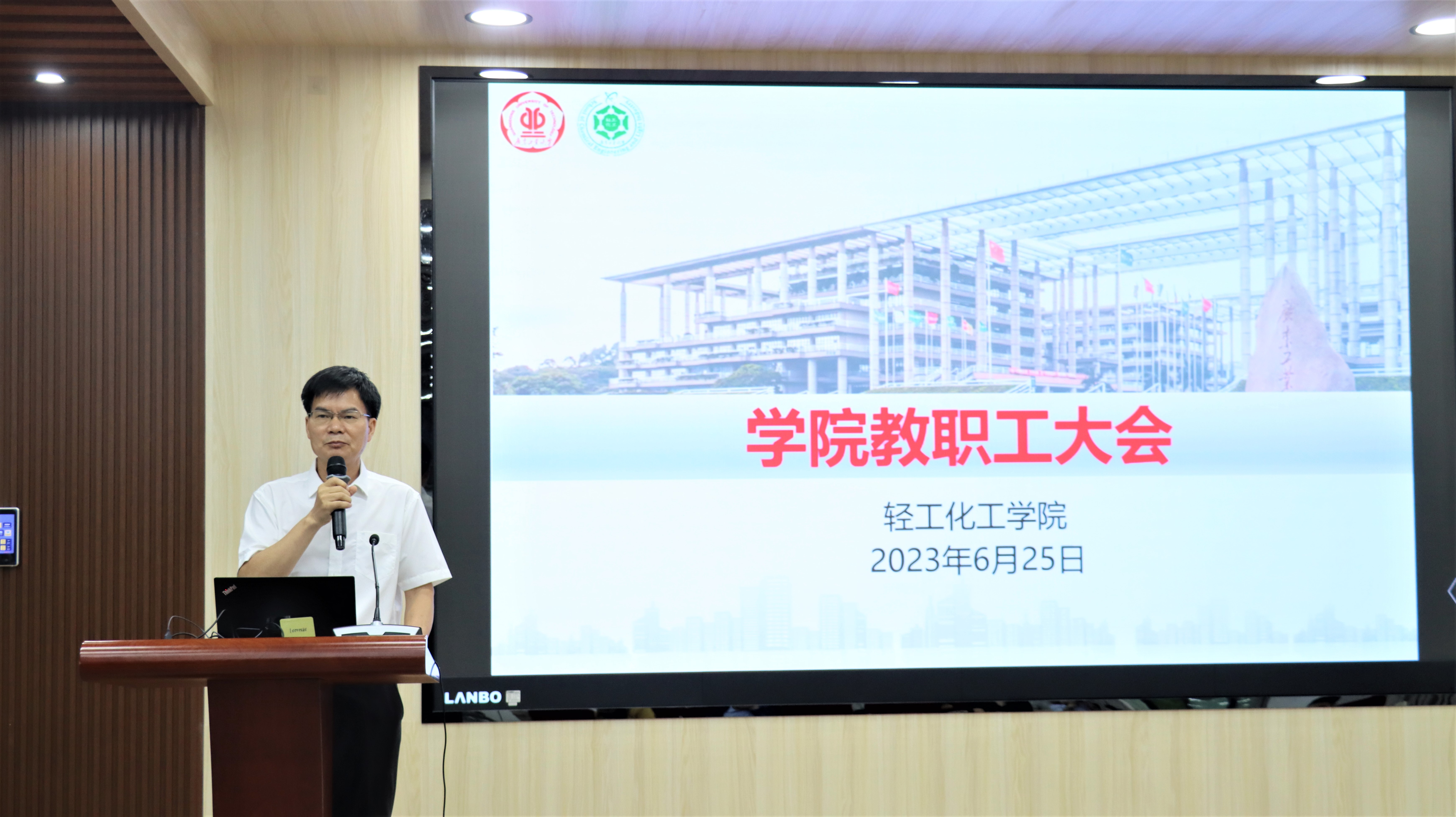 最后,周东斌对大会进行总结,肯定了学院在党建与思想政治、教学科研、学科建设、人才培养、文化育人等方面取得的进步,强调学院将进一步加强师德师风建设,牢记为党育人、为国育才的初心使命,要爱生如子,同时部署了学院近期工作,对班主任工作、期末考风考纪、学生身心健康、毕业就业、反诈防骗、实验室安全等提出要求,希望全院教职工临近期末守好安全责任田,扎实做好各项工作,以优异成绩献礼本科办学65周年。