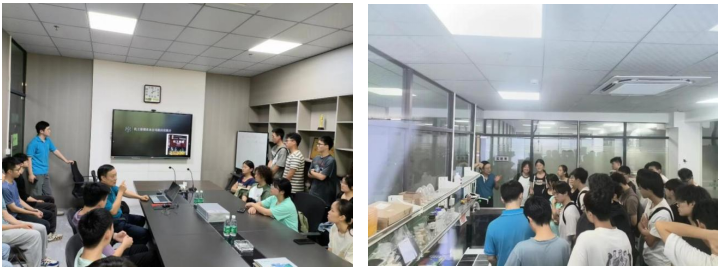 生产车间实地观摩:最后,张辉教授带领同学们进入生产车间参观,同学们近距离了解公司产品的生产工艺、化工单元操作设备,观察高新企业的智慧化运营和高效生产模式与安全环境,同时学习了拷贝漫画、管理理念、经营方式、业务流程。