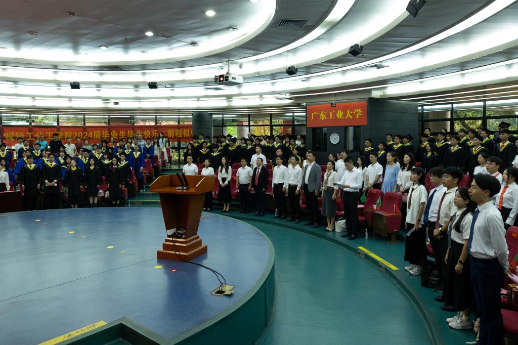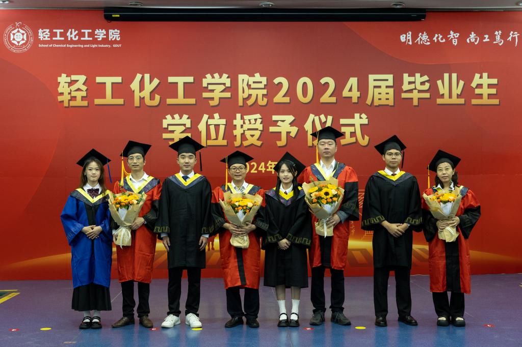 2024届毕业生学位授予仪式至此圆满结束!”全场响起热烈的掌声!愿轻化学子走出校门,牢记“团结勤奋,求是创新”的校训和“明德化智,尚工笃行”的院训,在追求真理的道路上阔步前行,传承广工精神,汇聚蓬勃的“轻”春力量。
