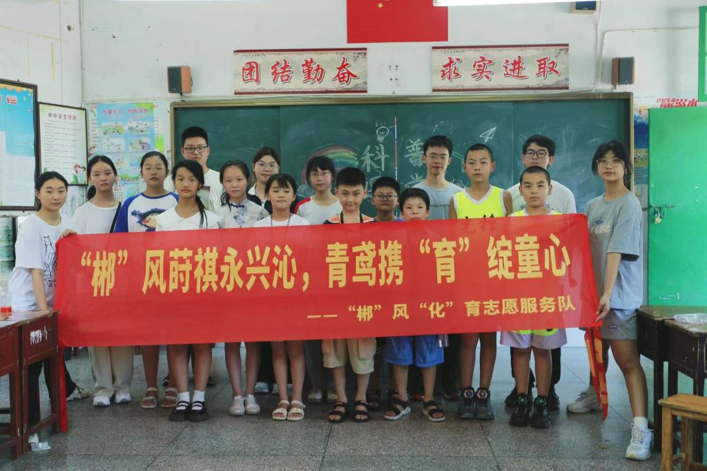 “郴”风莳祺永兴沁,青鸢携“育”绽童心。现服务队已获2024年共青团湖南省委、湖南省青年志愿者协会联合发布的关爱农村留守儿童“七彩假期”志愿服务团立项。“郴”风“化”育志愿服务队以专业知识为纽带,以满腔热情为动力,助推永兴县乡村振兴。在这片沃土上,与留守儿童们手牵手、心连心,共同成长。未来,服务队还将持续关注永兴县的县域教育情况,聚焦留守儿童的成长环境,努力打造适合留守学生的教育方案,并为永兴县的乡村振兴发展贡献更多的智慧与力量。(图/潘家悦、丘维凯、丁昊坤 文/丘维凯、冯浩宸)