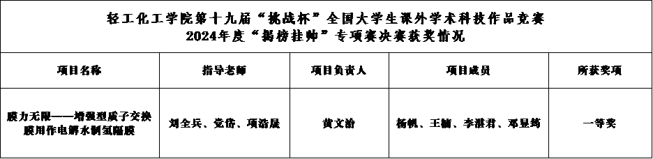 项目《膜力无限——增强型质子交换膜用作电解水制氢隔膜》成功取得国赛一等奖的成绩!
