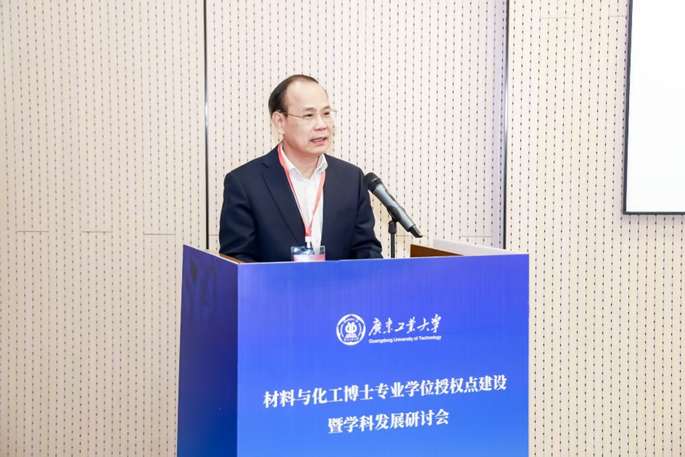 邱学青在会议开幕式上致辞,热烈欢迎各位专家莅临我校指导专业博士点建设。邱校长用“大、实、特、快”四个字概括了学校的发展情况,并表示2024年是我校发展史上具有里程碑意义的一年,学校在学科建设等多方面取得了质的飞跃,新增了7个博士点,位列全国第七、广东省属高校第一,实现了理工学科专业学位博士点的全覆盖,获批设计学一级学科博士点,实现了交叉学科博士点零的突破。他指出,材料与化工博士专业学位授权点的建设,不仅是我校博士学位授权体系的重要一环,更是响应国家战略、推动化工学科向绿色化、高端化发展的重要举措。他表示,希望通过此次研讨会,与专家们深入交流,共同谋划学科发展的战略布局,凝练学科方向,明确未来发展思路,并希望借此机会加强与各位专家的合作,为大湾区绿色创新发展贡献力量