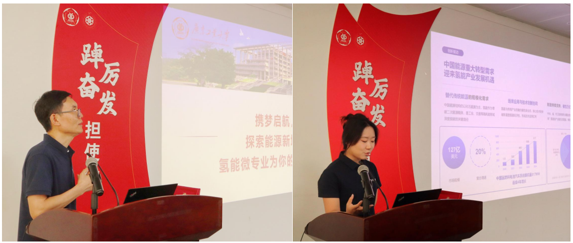 随后,氢能微专业副班主任孙明教授作了新一届招生宣讲,详细介绍了氢能微专业的办学优势、课程设置、就业前景以及招生政策等信息,让更多学生对氢能微专业有了更深入的了解,激发了他们报考的热情。