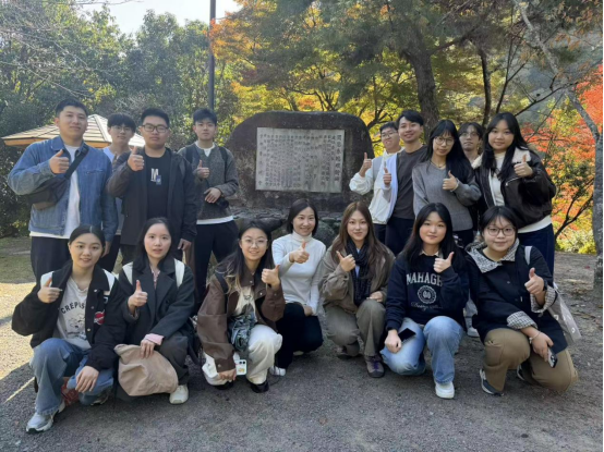 学术交流之外,一场红色教育之旅为此次行程赋予了厚重的精神内涵。在苍翠秀丽的京都岚山,学子们专程瞻仰了掩映在青松与枫林中的周恩来诗碑。1919年4月,留学日本的周恩来在此触景生情,写下《雨中岚山》,字里行间满是青年追求真理的博大胸怀;1979年,为纪念周恩来总理与中日和平友好,由日本友人吉村孙三郎倡议筹建的诗碑在此落成,邓颖超女士亲往揭幕,让这里成为承载中日友好与革命精神的重要地标。从青年周恩来“为中华之崛起而读书”的初心,到吉村孙三郎家族三代传承的中日友好信念,学子们在历史与现实的交汇中,深刻理解了个人理想与国家命运的紧密关联,更明晰了新时代青年的责任担当。
