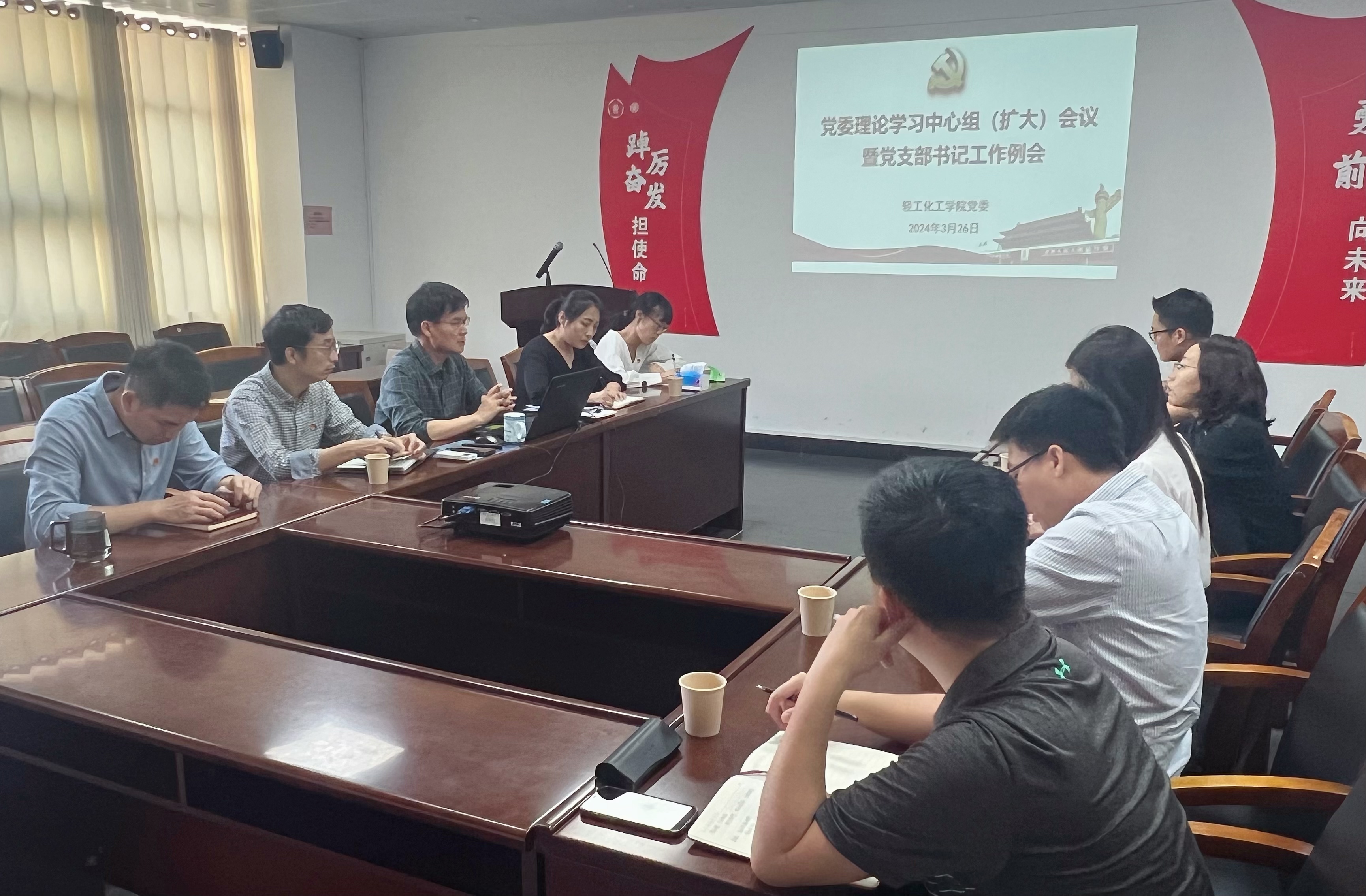 于工学四号馆202号会议室召开委理论学习中心组学习(扩大)会暨党支部书记工作例会。会议由学院党委书记周东斌主持,学院党委理论学习中心组成员、教师党支部书记参加会议。