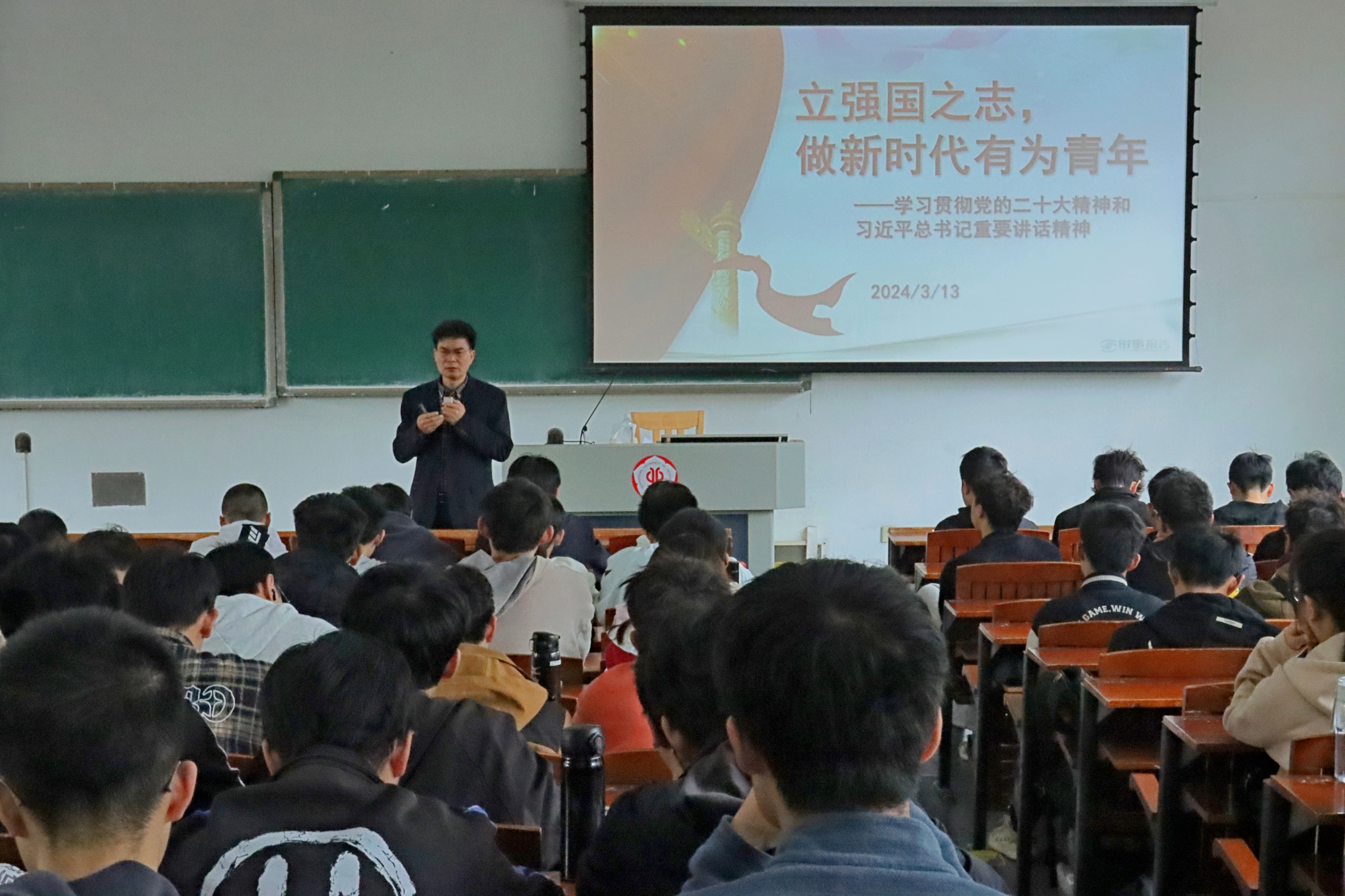 党委书记周东斌老师以《立强国之志,做新时代有为青年》为题,为2022级化学工程与工艺专业学生讲授春季新学期的“思政第一课”。