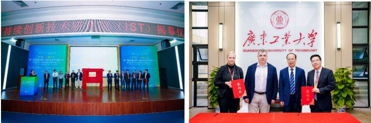 可持续创新技术研究院院长张山青教授向大家介绍了研究院的发展概况及热切期望,强调研究院将成为学术界和产业界共同发展的平台,推动智能材料和绿色电化学的全球跨界合作。随后,邱学青校长和诺奖得主诺沃肖洛夫教授一同与全球著名学者孙世刚院士、陈小明院士、赵惠军院士、张华院士、王连洲院士、郭再萍院士、陆俊教授、Daria Andreeva教授等为研究院的成立举行了揭幕仪式。