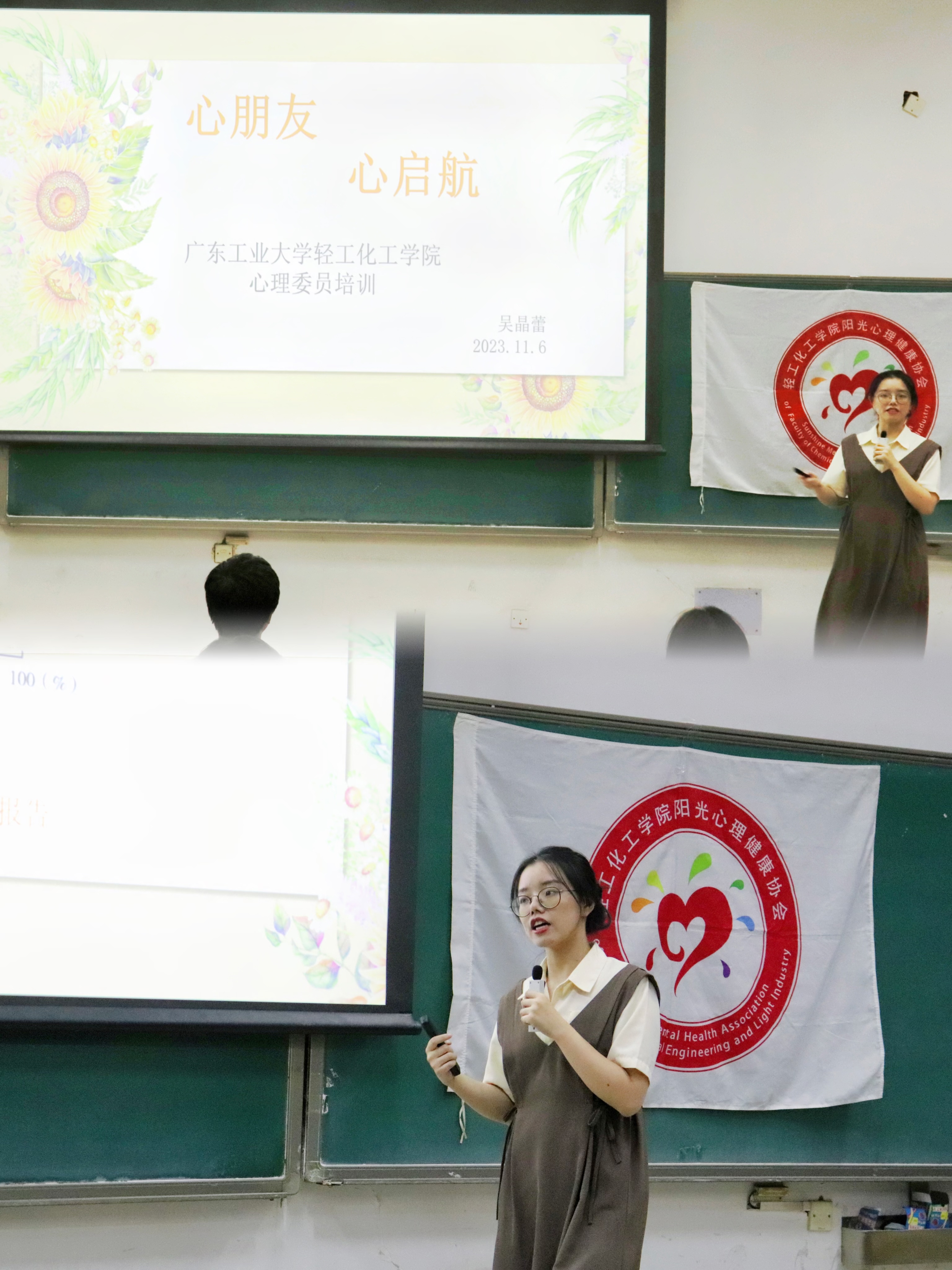 会上,华南师范大学心理健康中心的吴晶蕾老师先以“心朋友,心启航”为切入点,引出此次培训大会的主题。她指出,心理委员应熟悉自己的定位,了解自己在学校、学院、班级中发挥的作用,普及心理知识,组织同学们积极参加心理活动,加深同学们对自己内心深处想法的认识与了解。