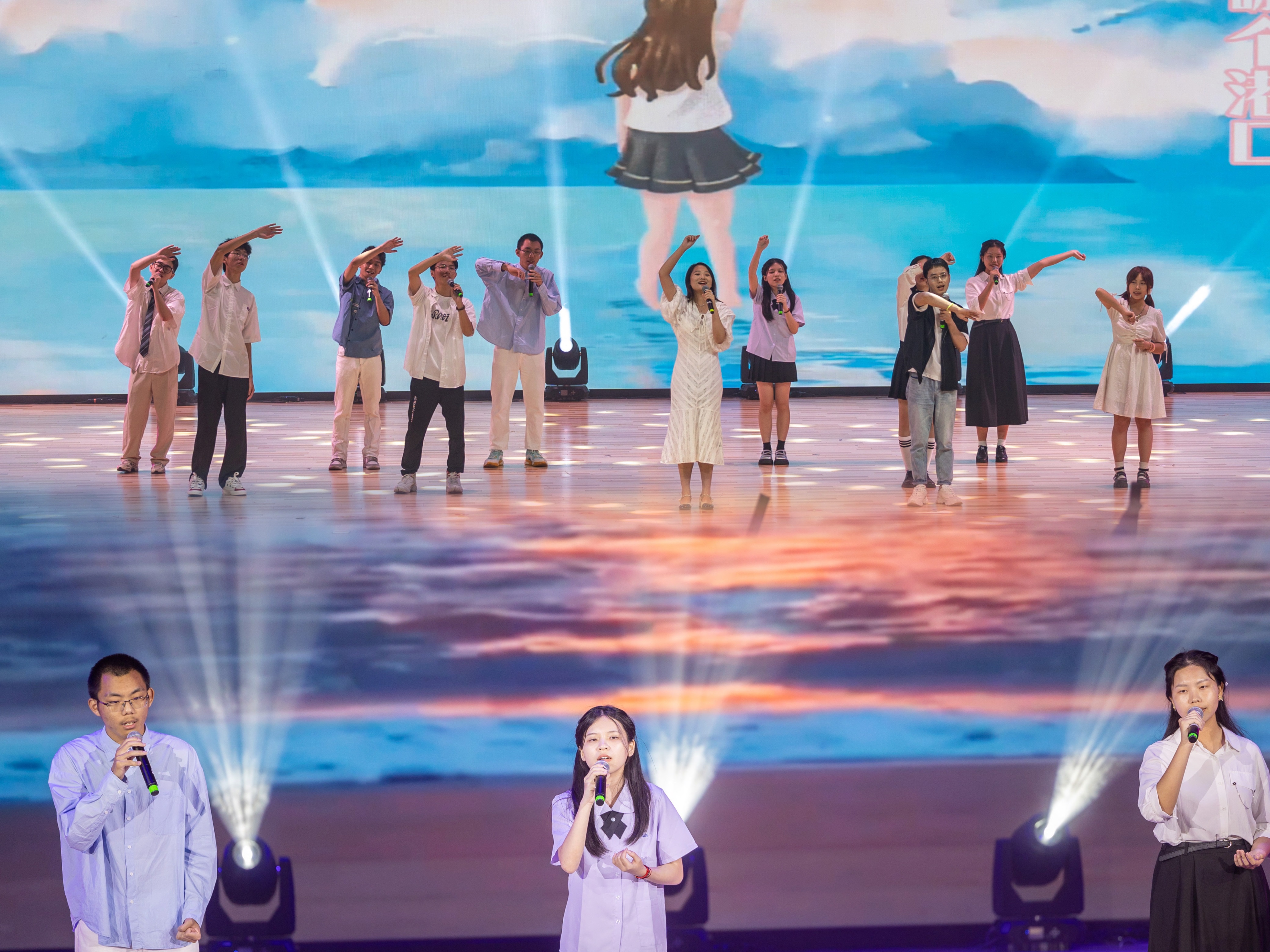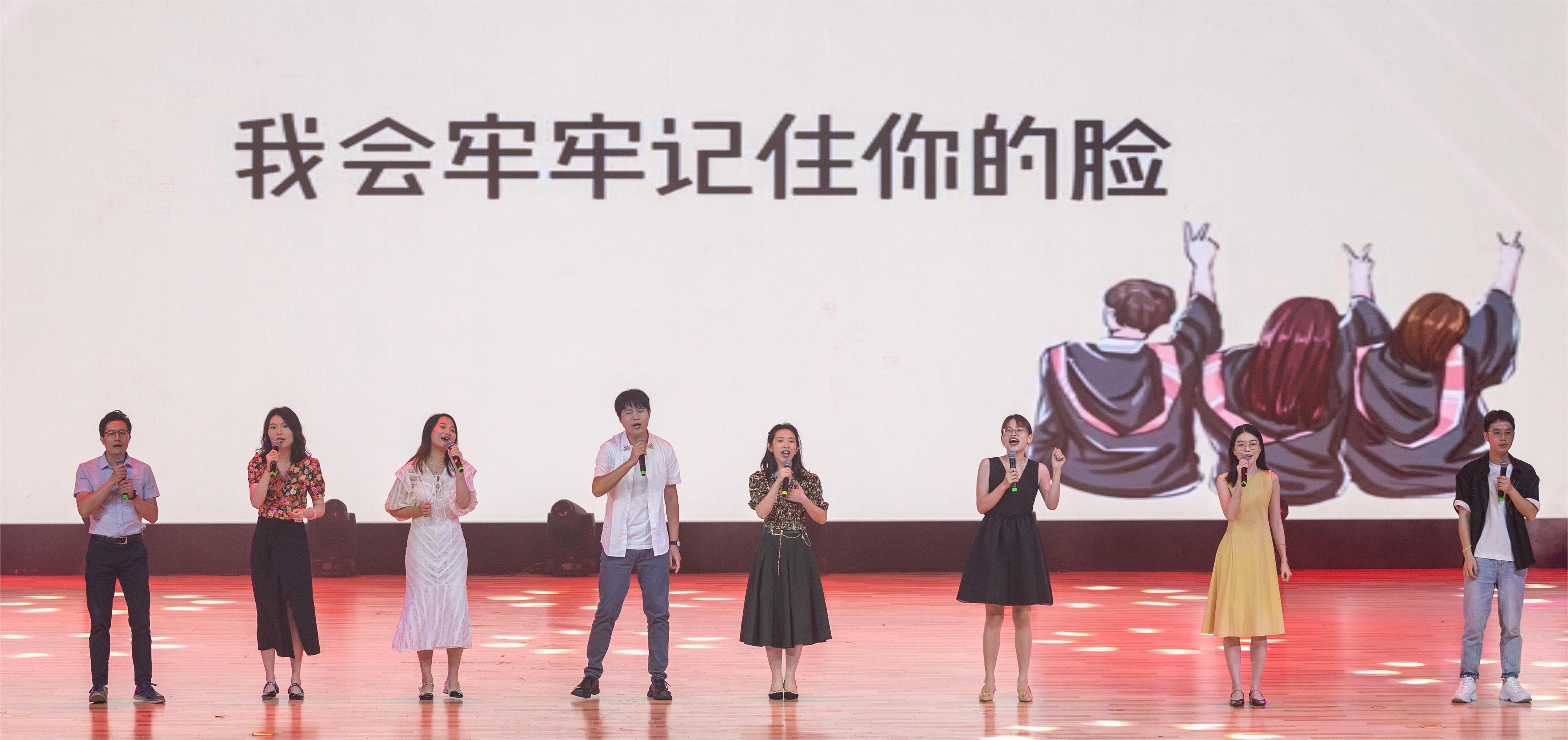 联欢会的最后,三个学院的辅导员老师和学生登台同唱,用《起风了》《凤凰花开的路口》《再见》等歌曲表达了对毕业生们与梦想相抱的美好祝愿。