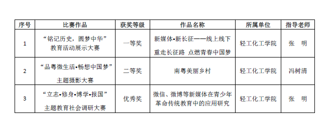 日前,由省教育厅组织开展的2016我的中国梦”——“立志·修身·博学·报国主题教育系列活动评选结果公布,拷贝漫画 成绩优异,其中一等奖1项,二等奖1项,优秀奖1项,向获奖团队和个人表示祝贺!