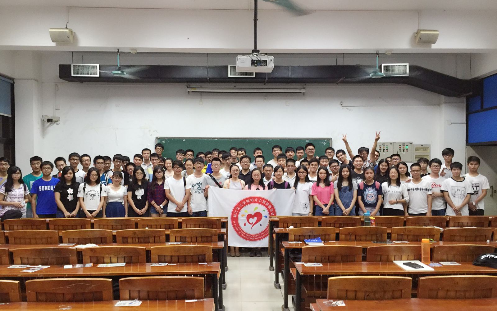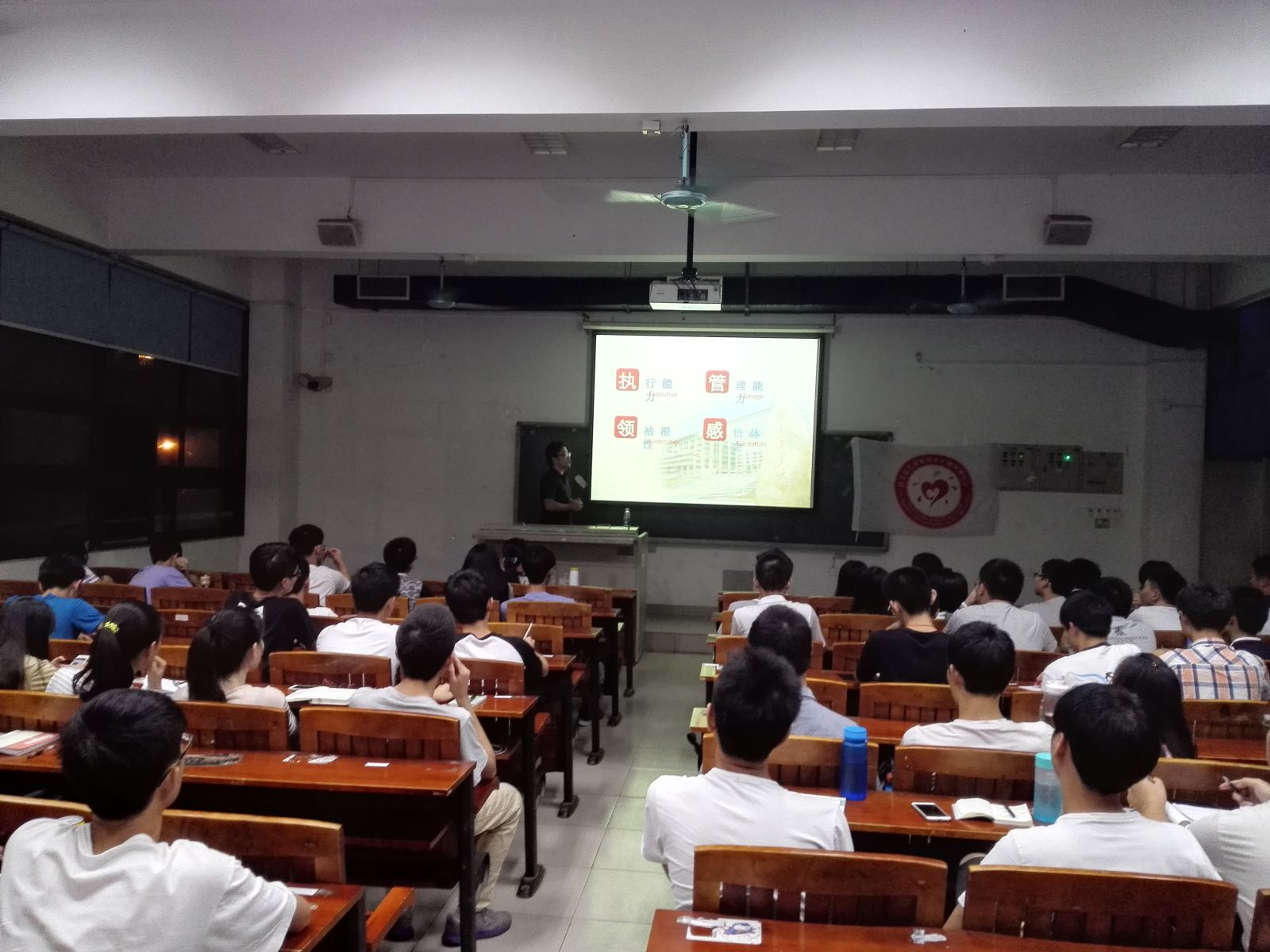 随后,王冠尧老师做学生干部素质技能培训。王老师从管理学的角度出发,主要针对执行能力和管理能力两方面进行深度剖析,为社团工作者如何在组织中锻炼自我以成为优秀的领导者指明了方向和道路。培训中,王老师不时搭配上生动的例子,并以其丰富的肢体动作及幽默的语言风格,极好地调动起现场气氛,充分吸引了大家的注意力。培训结束后,由阳光心协主席及各部门部长分别上台简单介绍主席团或各自部门的工作职能和本届成员。最后全体参会人员合影留念,本次全体大会圆满结束。