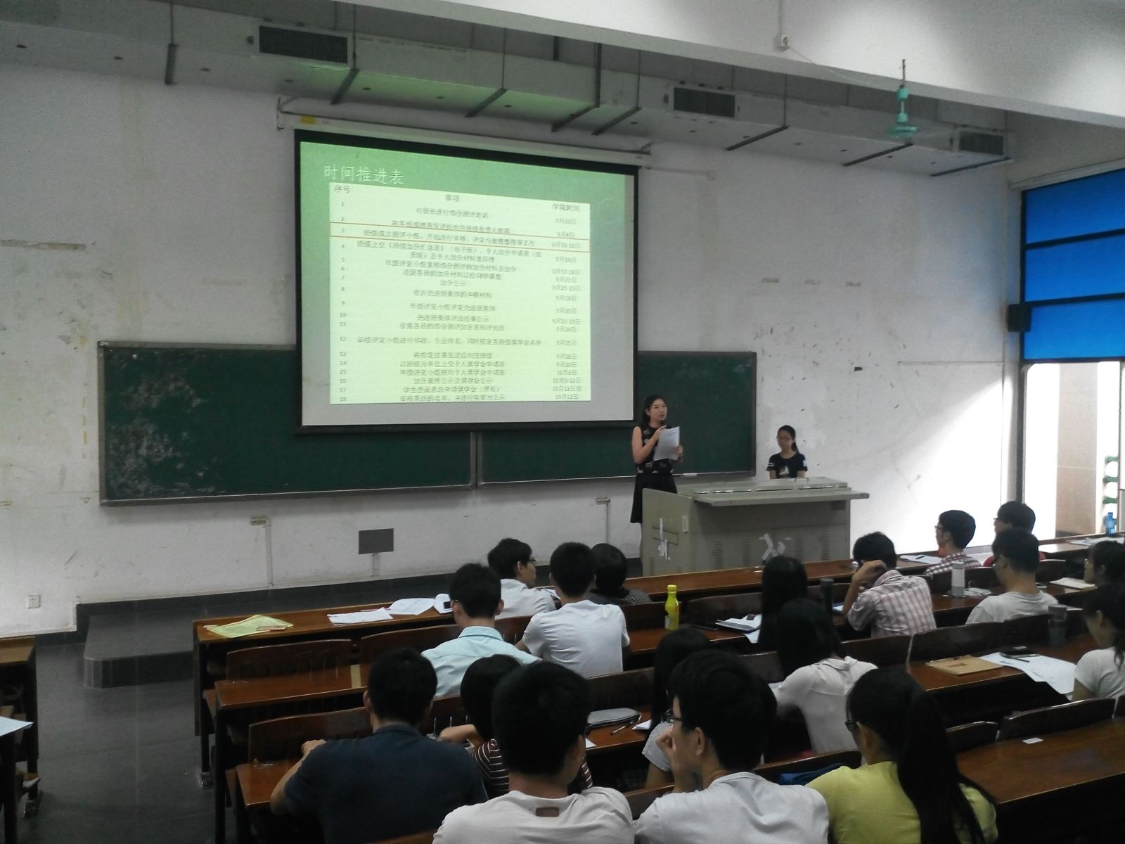 学工会秘书部部长丁纯淇同学向班委们逐一讲解了学院综合测评细则中的各项内容,重点强调了综合测评各大模块的加分条件和证明材料的上交规定,并结合PPT针对一些常见的综合测评问题作出解答,同时公布了综合测评时间推进表。