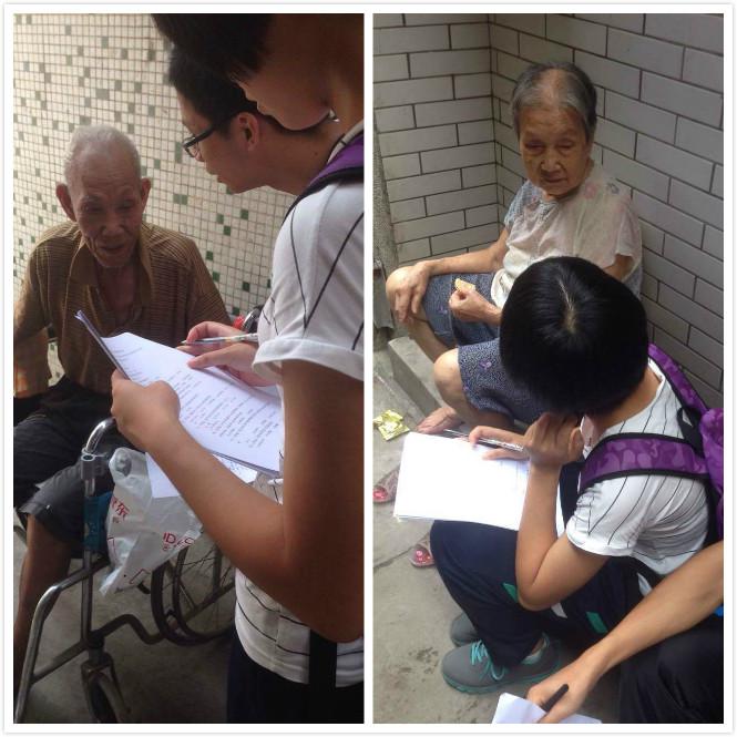 “空巢老人的生活现状”调研课题。我们走进钟村的大街小巷,对那些在门口乘凉聊天的老人们进行谈话调研,因为老人们多数都是当地人,而且不方便直接叫他们填写问卷,我们只好用广州话跟他们谈,关心问候他们,并了解他们的生活状况。从谈话中得知,多数老年人不和儿女同住,有老人金,平时较少参加社区活动;较多老人有高血压等疾病,每个月都需要花费不少钱去买药吃。调研过后,我们都有很多的感触。空巢老人需要更多的关怀,不一定是经济上的支持,就算是简单的探访和慰问,他们都会感到很温暖。