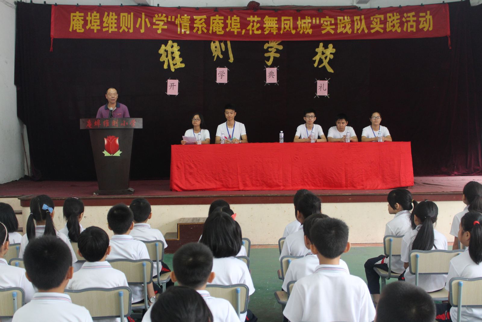 7月16日,拷贝漫画 赴潮州潮安食品安全调研宣讲服务团在潮州市潮安区庵埠镇维则小学召开暑期社会实践兴趣班的开学典礼。维则小学黄副校长出席,实践队队长黄丽萍主持。