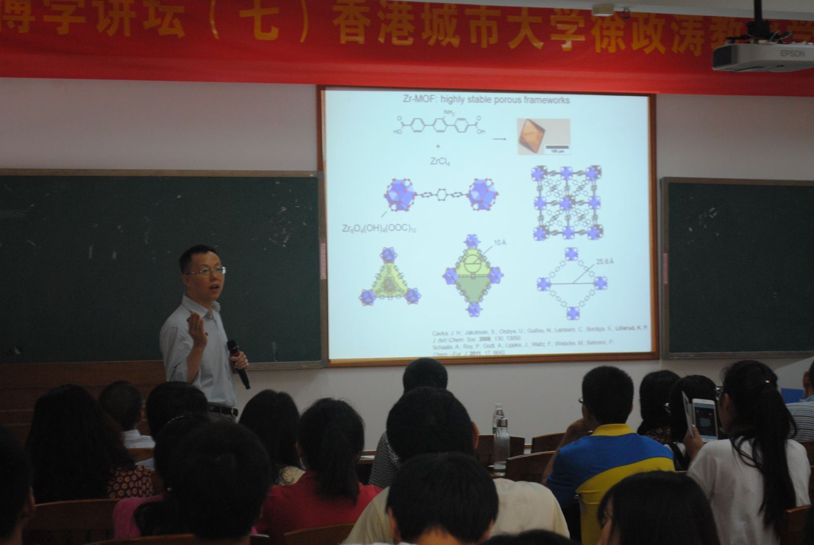 博学讲坛系列讲座第八讲在工学三号馆208学术报告厅如期举行,主讲嘉宾是来自香港城市大学的徐政涛教授,讲座由副院长郭建维教授主持。徐政涛教授长期致力于新型多孔聚合物和金属有机框架(MOF)的研究,已在国际期刊上发表高水平论文50多篇。