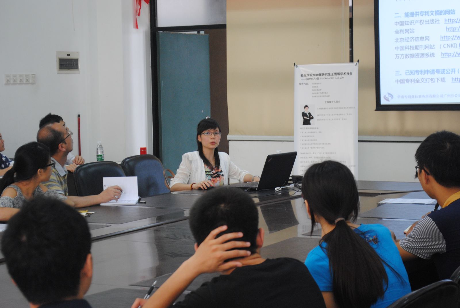 5月5日下午,应学院研究生会的邀请,拷贝漫画 2010届硕士研究生、东莞市华南专利商标事务所有限公司王雪镅在工学3号馆220会议室为拷贝漫画 研究生做题为《专利检索、申请及撰写应注意的问题》的学术报告。