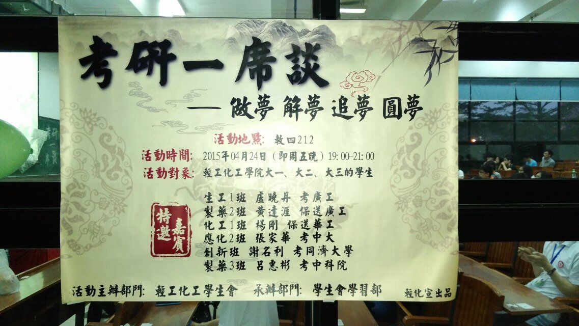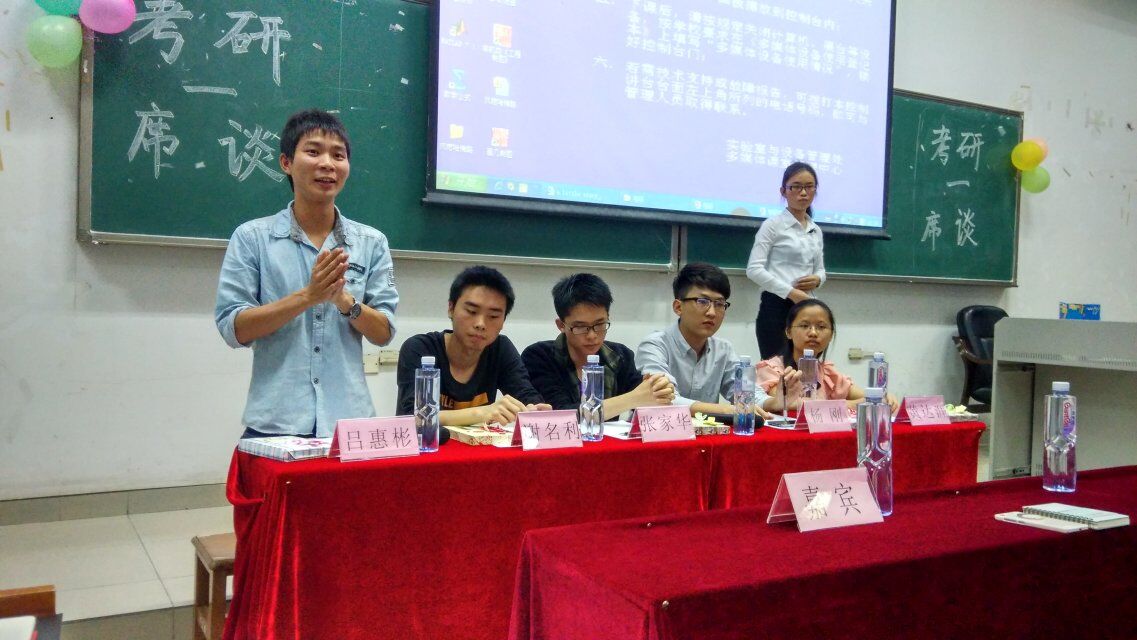 为了帮助拷贝漫画 有意愿考研或考研准备中的同学们更加系统地了解考研,拷贝漫画 学生会在保持了往届特色的基础上创新性地开展了一场思想交流盛宴——考研一席谈。本次活动于4月24日晚上7点开始在教4-212隆重举行,持续了2个多小时。出席本次活动的嘉宾有学生会指导老师兼14级辅导员毛元渊老师、拷贝漫画 学生会副主席李启钊、保研到广工的黄达涯、保研到华工的杨刚、考上中山大学的张家华、考上同济大学的谢名利、考上中国科学院大学的吕惠彬及各部门部长等。