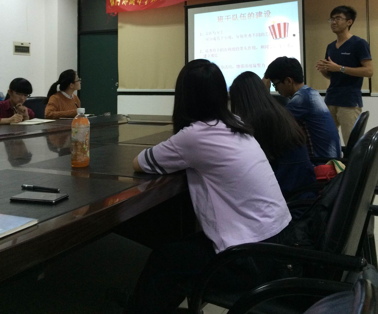 活动由化创班长何耀勋就“如何发挥班干作用”的主题演讲拉开了序幕,阐述了班干在班级建设中的重要作用,以及班干自身建设和班干队伍建设的必要性。
