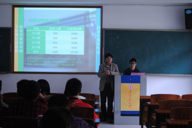 团委于工学三号馆208学术报告厅召开了2014年团费使用情况通报会。学院团委书记林焕章老师、团委学生会主要学生干部代表、各年级各班团支书参加了会议。