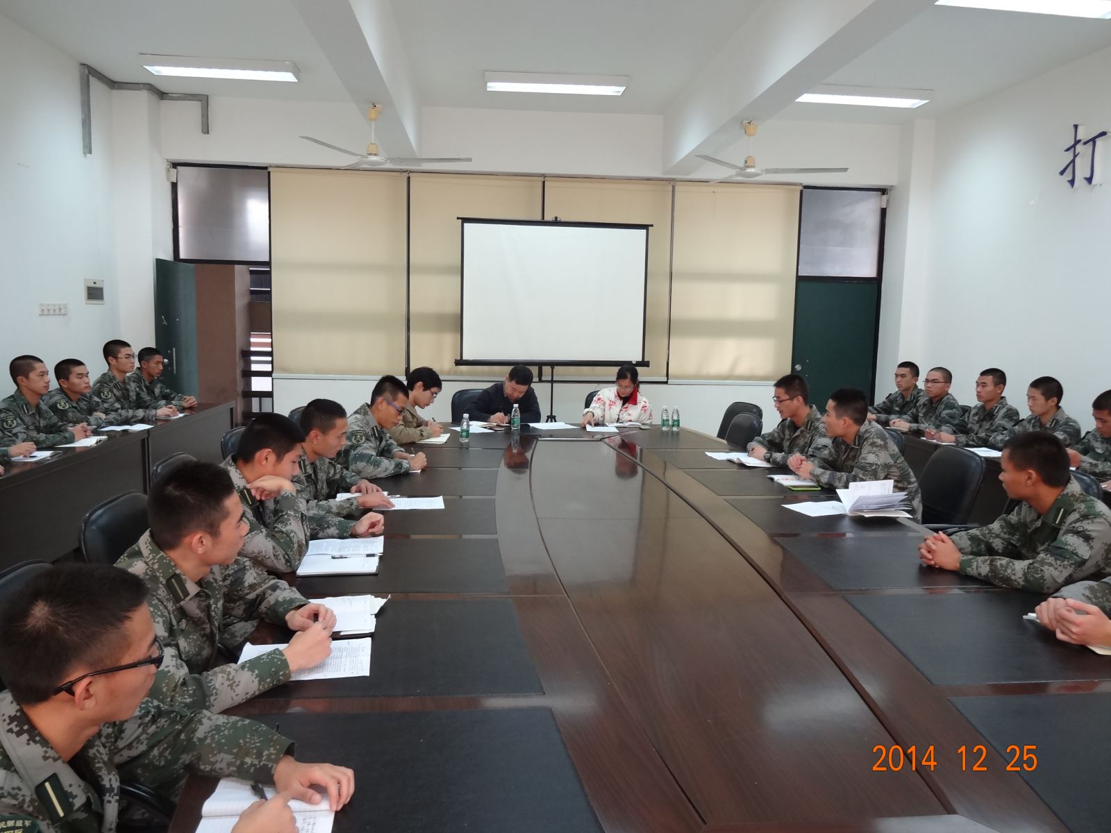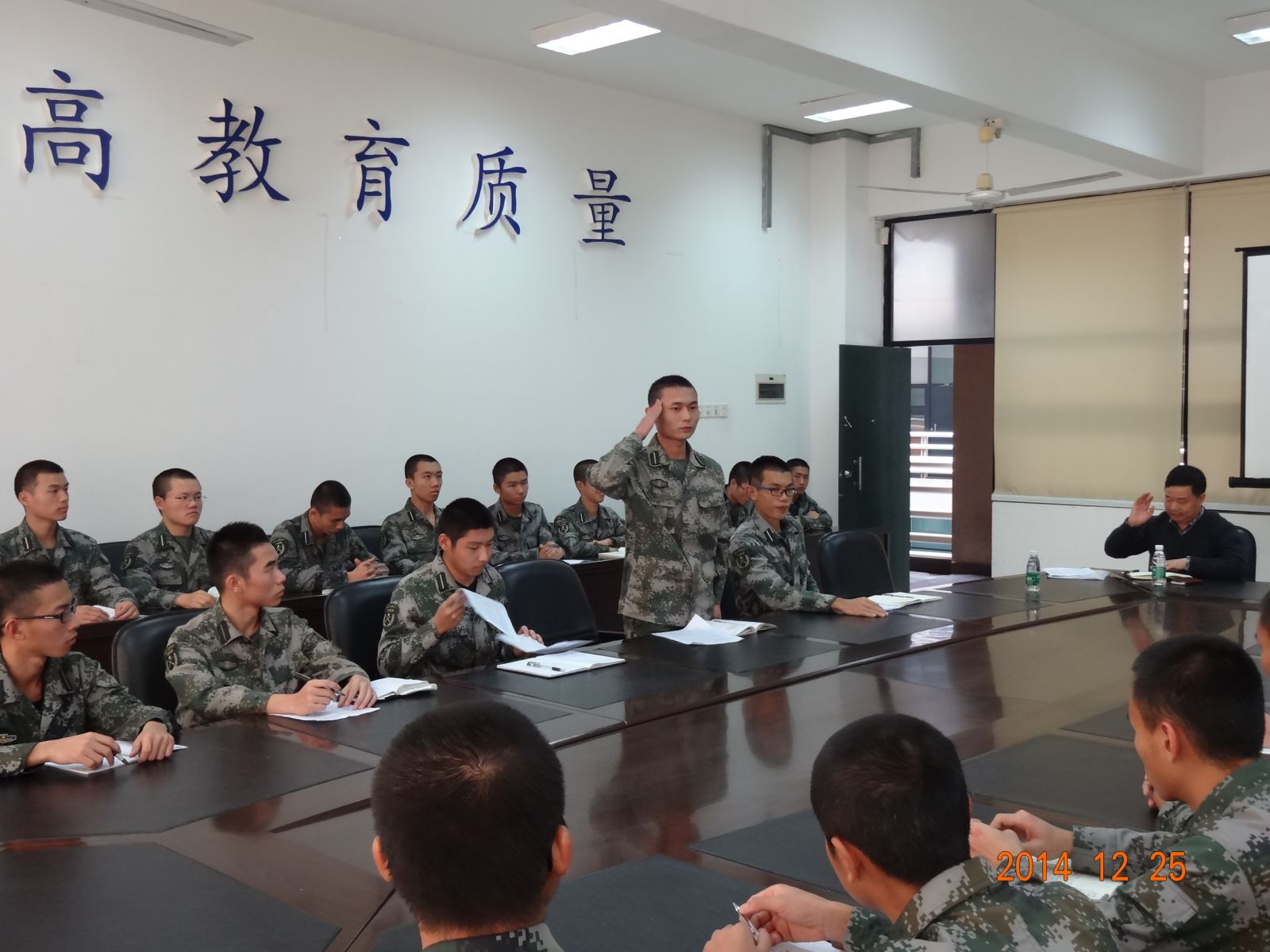 于工学三号馆220室举行国防生培养特色与国防生精神研讨会。院党委孙水裕书记,英健文副书记,国防生辅导员冯树清老师,14国防生班全体成员及高年级国防生代表参加研讨。