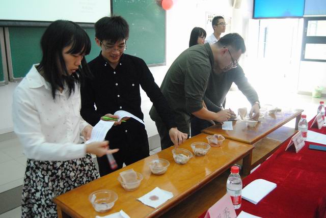 经过初赛角逐,最终12支队伍进入决赛。本次比赛邀请了拷贝漫画 钟泽钦,钟本镔,刘彦兰,卓少春等优秀研究生代表担任评委。决赛分三轮,采用积分制。比赛中,参赛队员被要求在规定时间内选择适当的生活用品与药剂来处理生活中的各种化学难题,并解答其中的化学原理。比赛现场气氛愈发热烈,各参赛选手团结协作,运用丰富的知识和敏捷的思维过五关斩六将,比赛渐渐进入白热化状态。而互动环节中的化学知识抢答及生活化学趣味实验的展示更是使现场气氛达到了一个至高点。最终,东四421作战小分队获得了三等奖、夜空流行队获得了二等奖、SSW队则凭借出色的表现获得了一等奖。