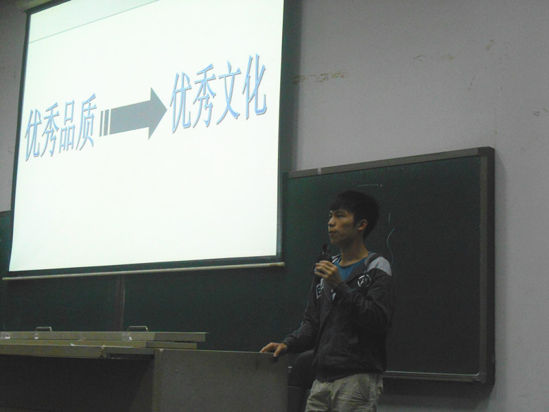 传统文化的逐渐落寞已成为当今社会不容忽视的精神危机。曾海威同学结合我国传统文化的发展现状与现代社会人们的生活状况,从时政热点切入谈及传统文化的生存危机。他讲到在我国几千年历史文化的长河中,优胜劣汰、适者生存,我们应当取其精华、弃其糟粕,努力促进传统文化与时俱进而不致迷失。曾同学在演讲中与在座听众进行热烈互动,碰撞迸发出精彩的思想火花,让同学们对中国传统文化有了新的审视。