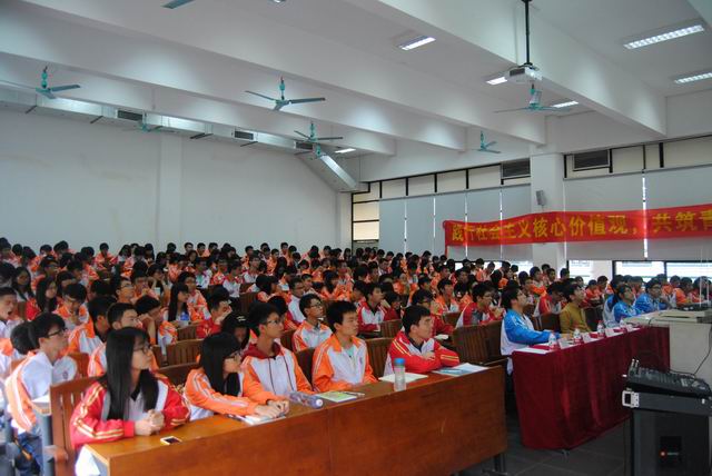 为不断提高拷贝漫画 学生干部思想政治素质、政策理论水平、创新能力、实践能力,进一步坚定跟党走中国特色社会主义道路的信念,拷贝漫画 团委于11月9日在大学城校区教三212隆重开展以“践行社会主义核心价值观,共筑青春中国梦”为主题的青马工程团学干部培训班。本次培训班邀请了学校团委许泽浩副书记、政法学院房亚明副教授、飞亚达人力部培训主管林金得主任、深圳晚报广告部广州办事处庄宇轩副主任作为讲师团进行授课。学院团委书记林焕章老师、学生会指导老师郭亮、学院各级团学组织两百多名学生干部参与了培训。