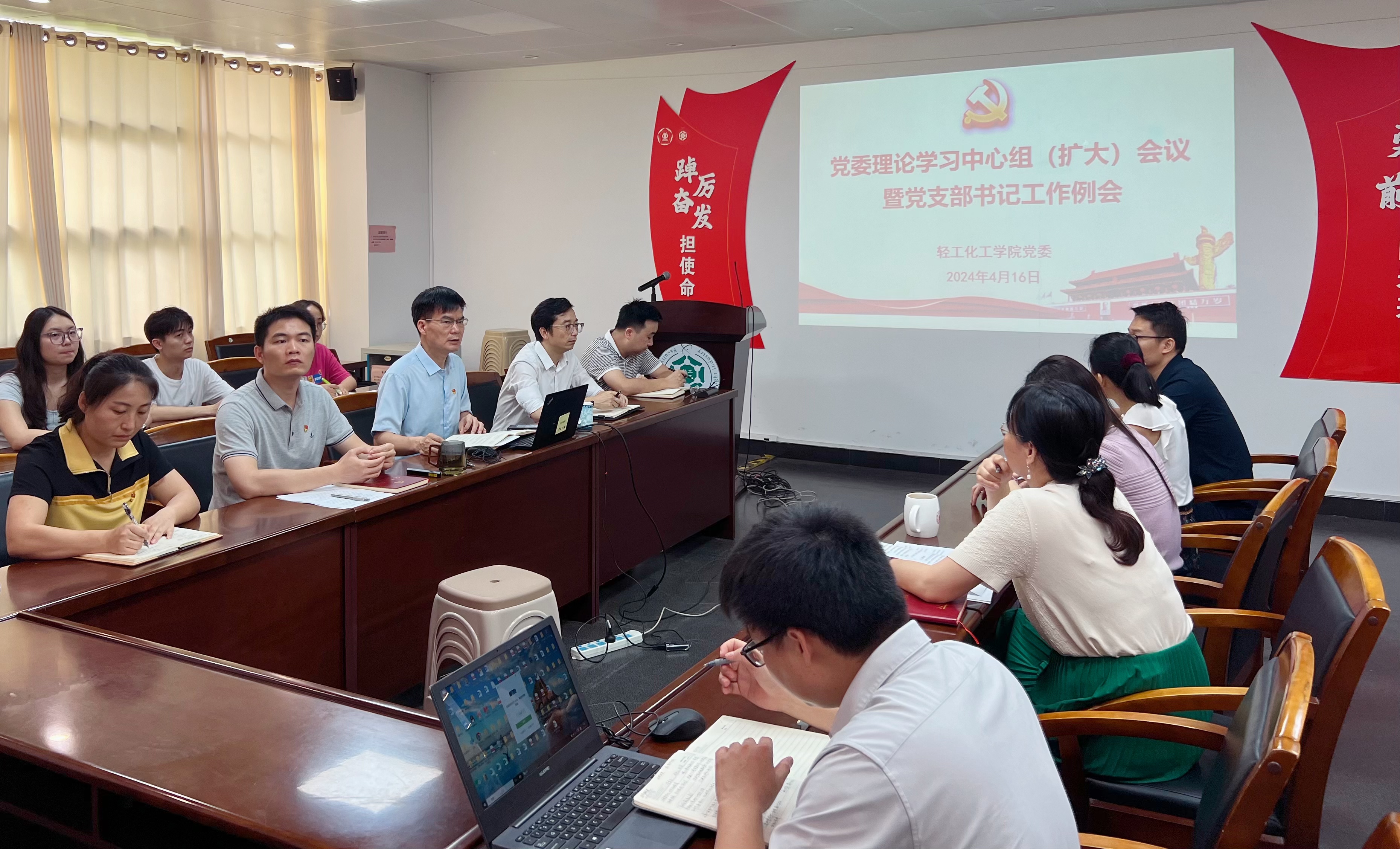 于工学四号馆202号会议室召开党委理论学习中心组学习(扩大)会暨党支部书记工作例会。会议由学院党委书记周东斌主持,学院党委理论学习中心组成员、教师党支部书记及研究生党支部书记参加会议。