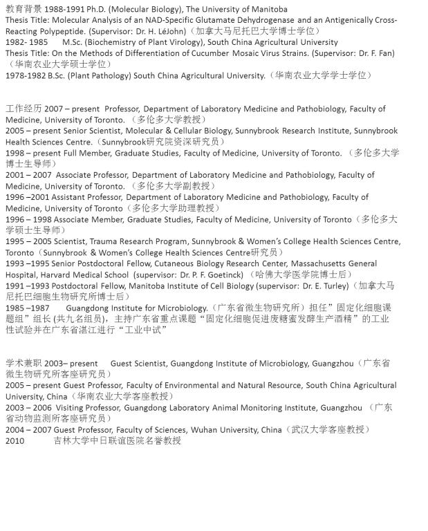 (限300字)     广东省微生物研究所2011年引进的广东省领军人才,在国外担任重大科技项目的首席科学家,从事的科研工作具有国际先进的研究水平。近年来在国外重要核心刊物上发表重要影响的学术论文数十篇并获得国外重要科技奖励多项。